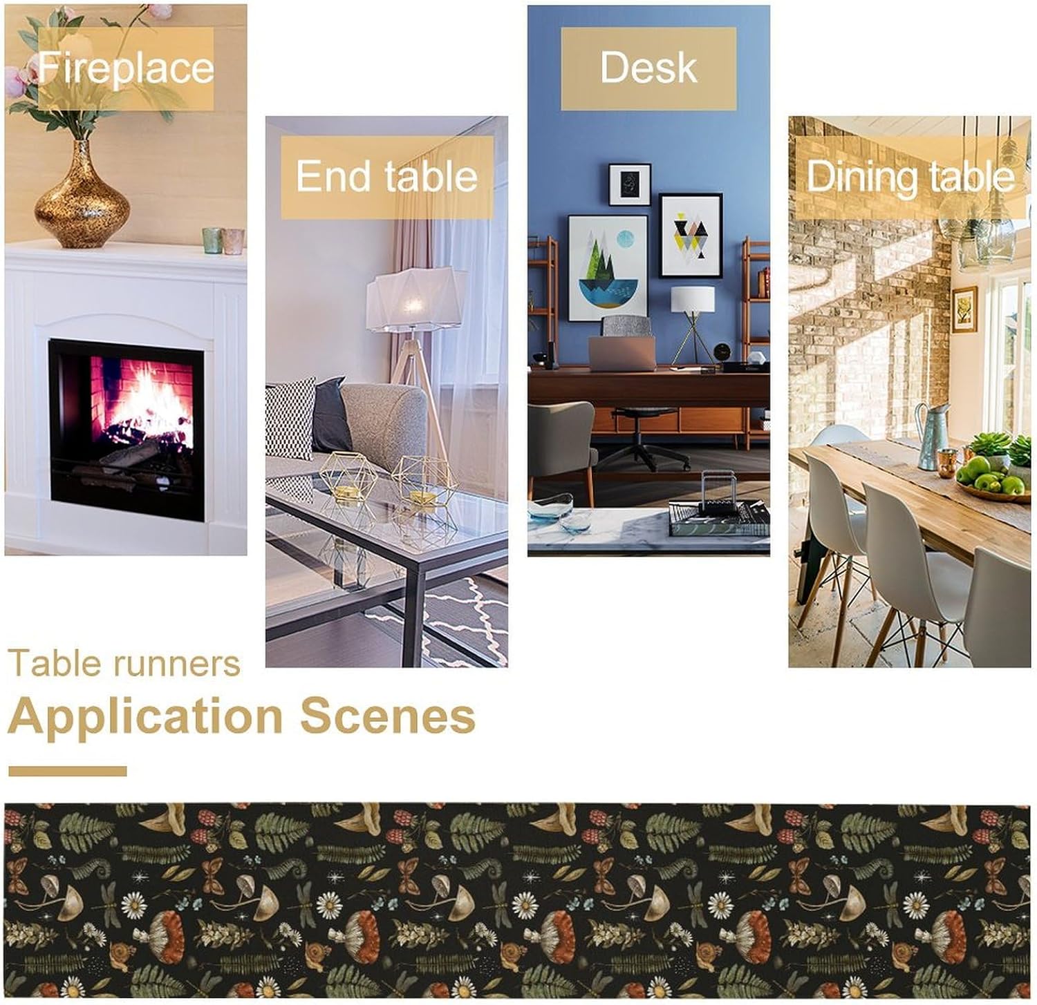 Mushroom Table Runner,Retro Forest Plant Table Runner for Kitchen Dining Table Home Party Decoration 13x90 Inch