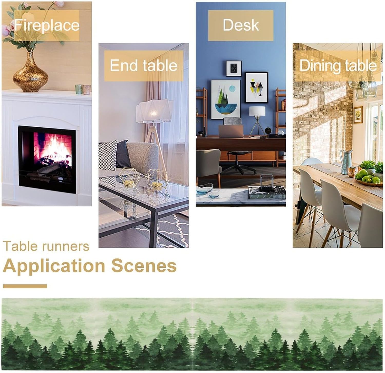 Foggy Forest Table Runner,Watercolor Wreen Misty Forest Landscape Table Runner for Kitchen Dining Table Home Party Decoration 13x90 Inch