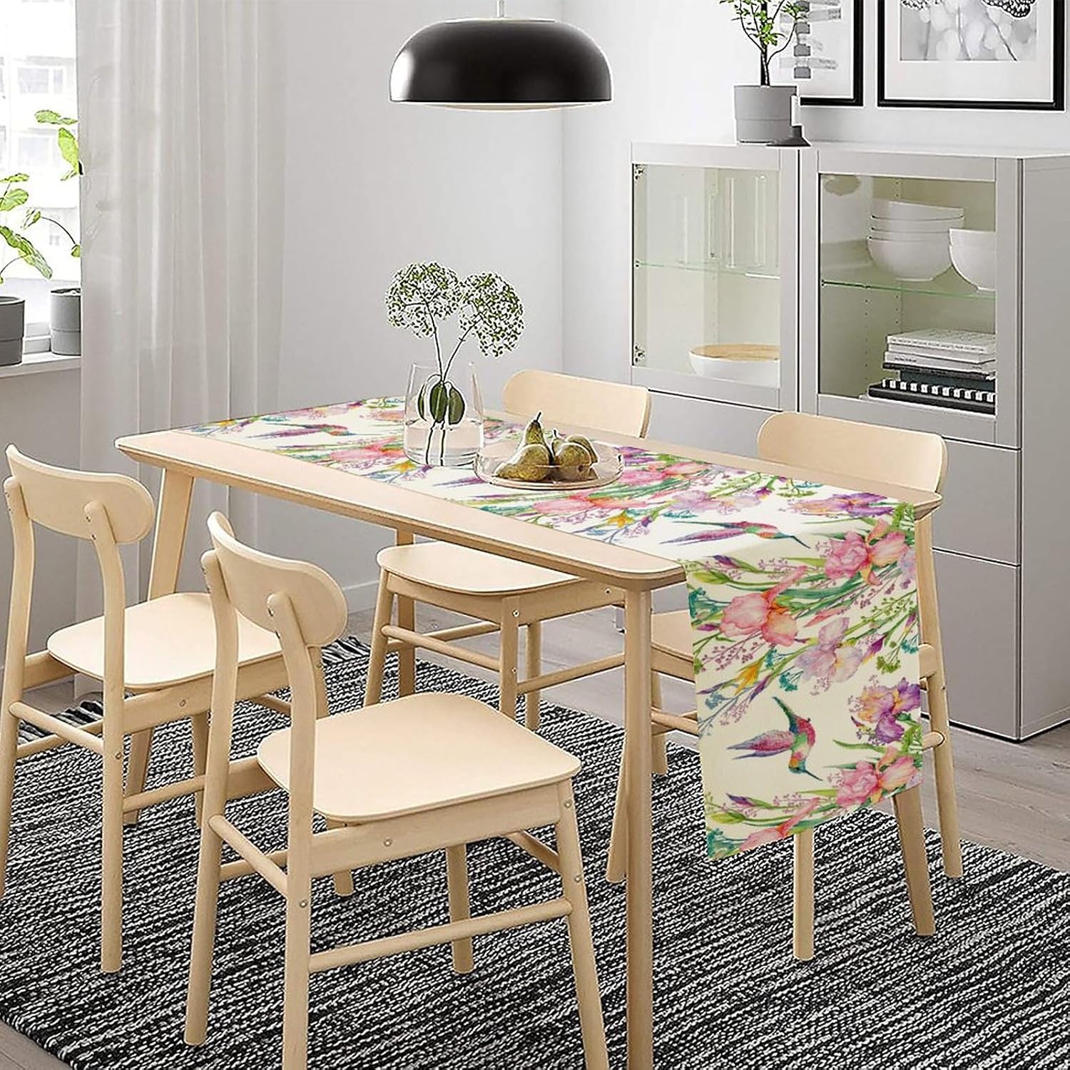 Hummingbird Table Runner,Pink Floral Country Style Table Runner for Kitchen Dining Table Home Party Decoration 13x90 Inch