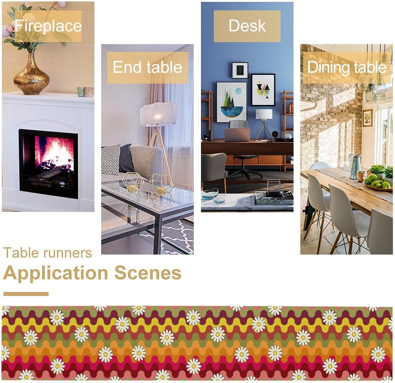 Vintage Floral Table Runner,60s 70s Colorful Retro Abstract Hippie Print Table Runner for Kitchen Dining Table Home Party Decoration 13x90 Inch