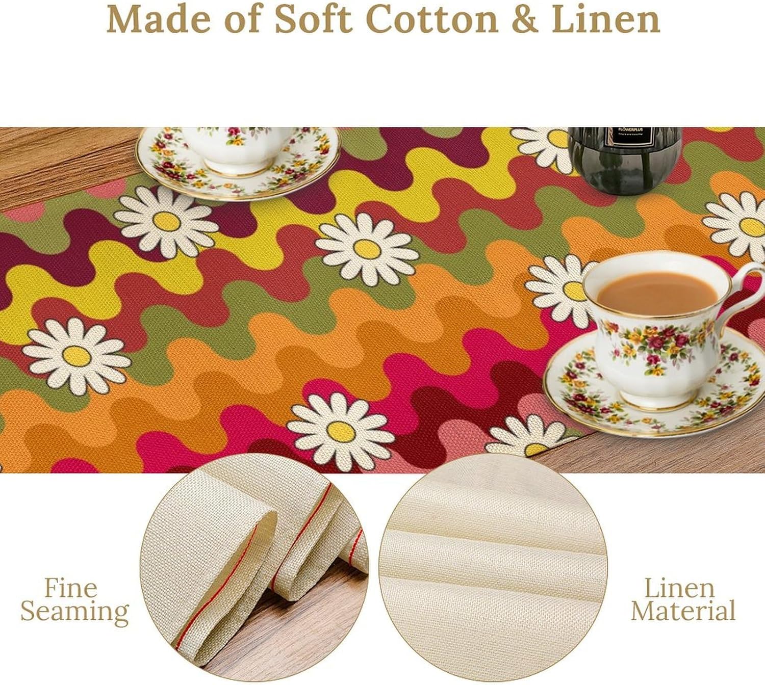 Vintage Floral Table Runner,60s 70s Colorful Retro Abstract Hippie Print Table Runner for Kitchen Dining Table Home Party Decoration 13x108 Inch