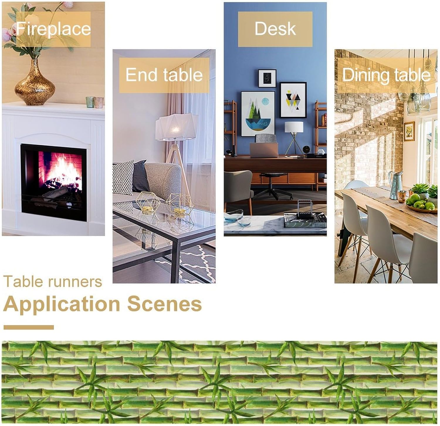 Bamboo Table Runner,Green Plant Print Table Runner for Kitchen Dining Table Home Party Decoration 13x108 Inch