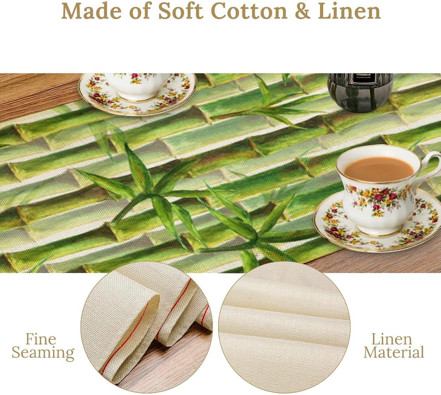 Bamboo Table Runner,Green Plant Print Table Runner for Kitchen Dining Table Home Party Decoration 13x72 Inch