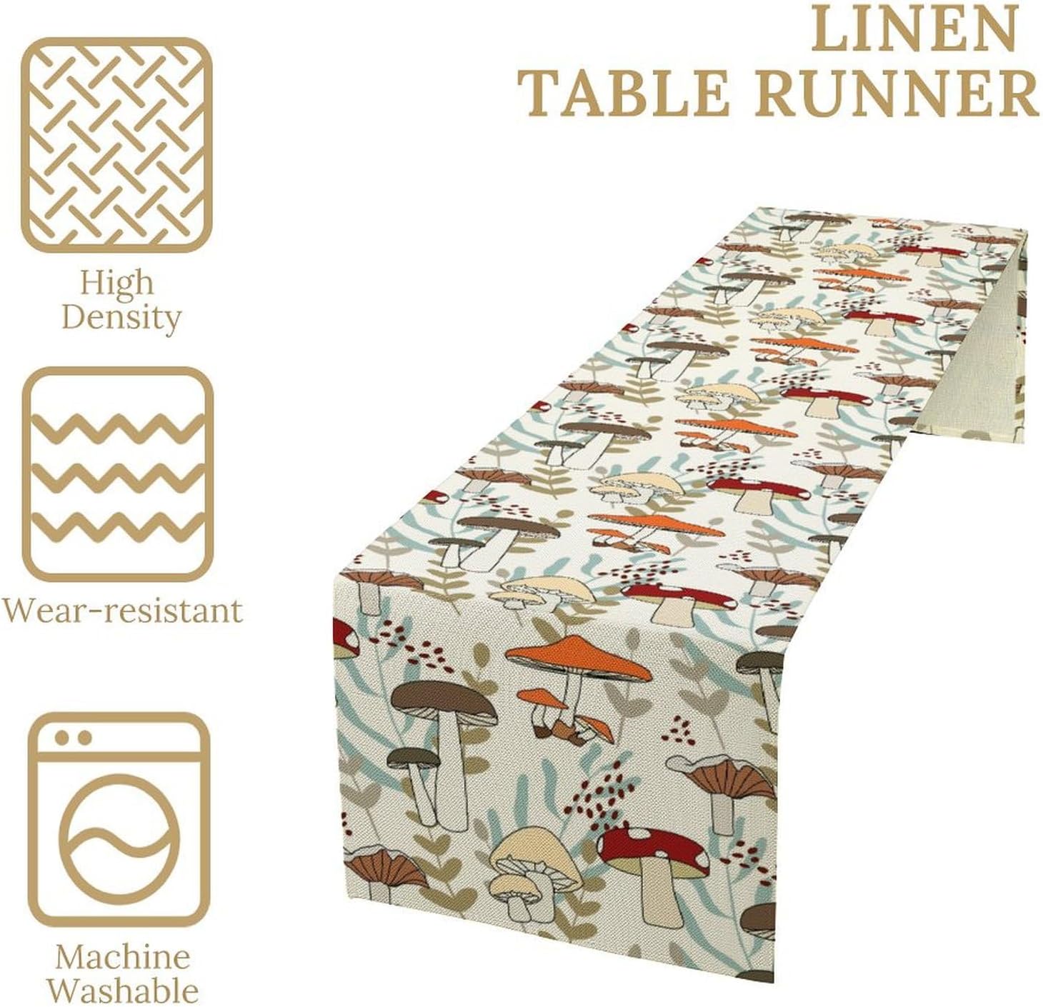 Mushroom Table Runner, Vintage Nature Plant Table Runner for Farmhouse Kitchen Dining Table Decoration for Home Party Decor 13x72 Inch