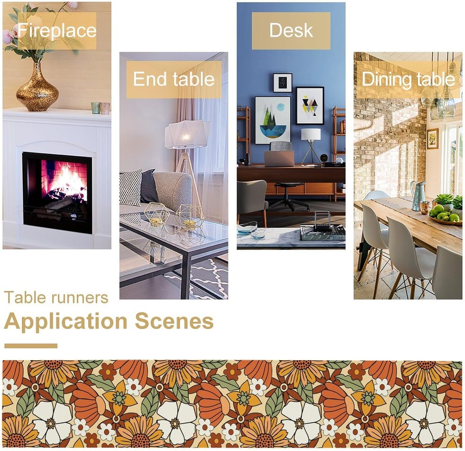Vintage Floral Table Runner,Boho 70s Style Retro Flower Table Cloth Kitchen Dining Table Home Party Decoration 13x72 Inch