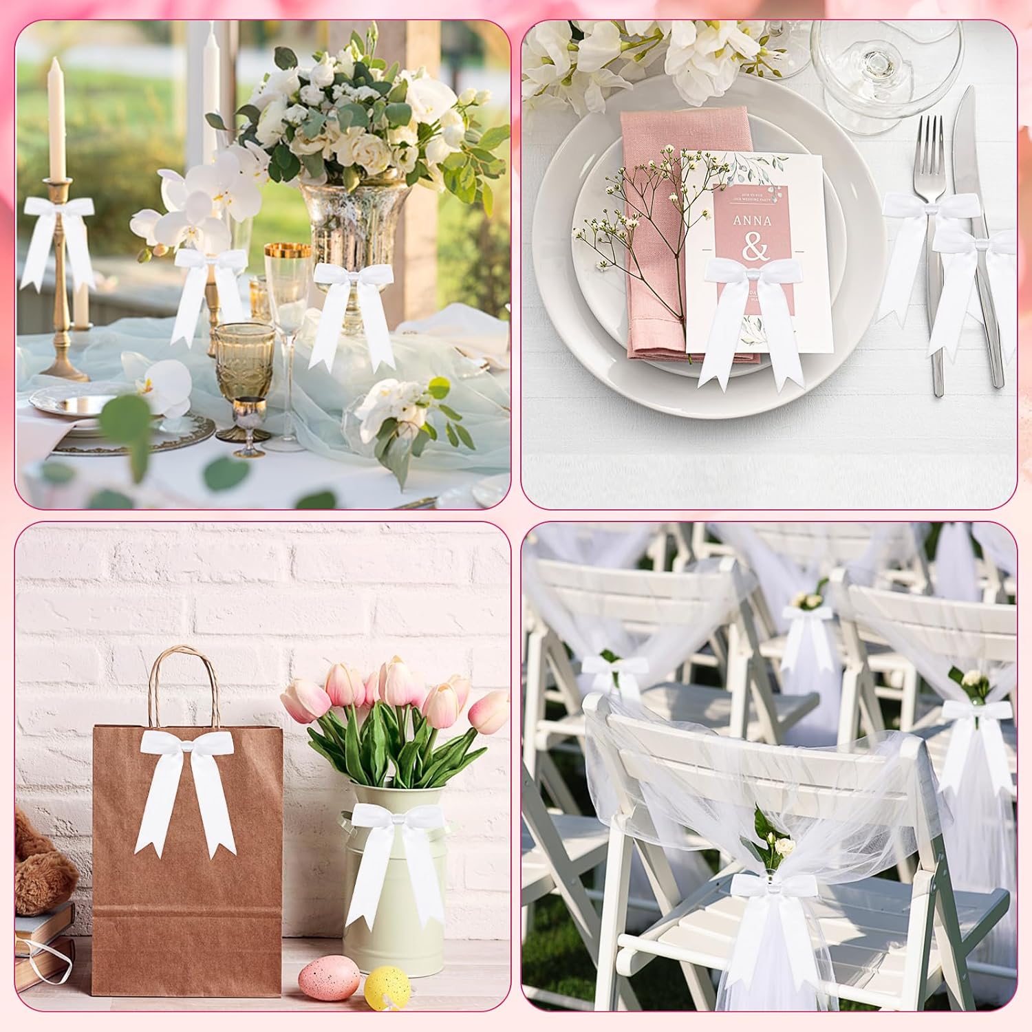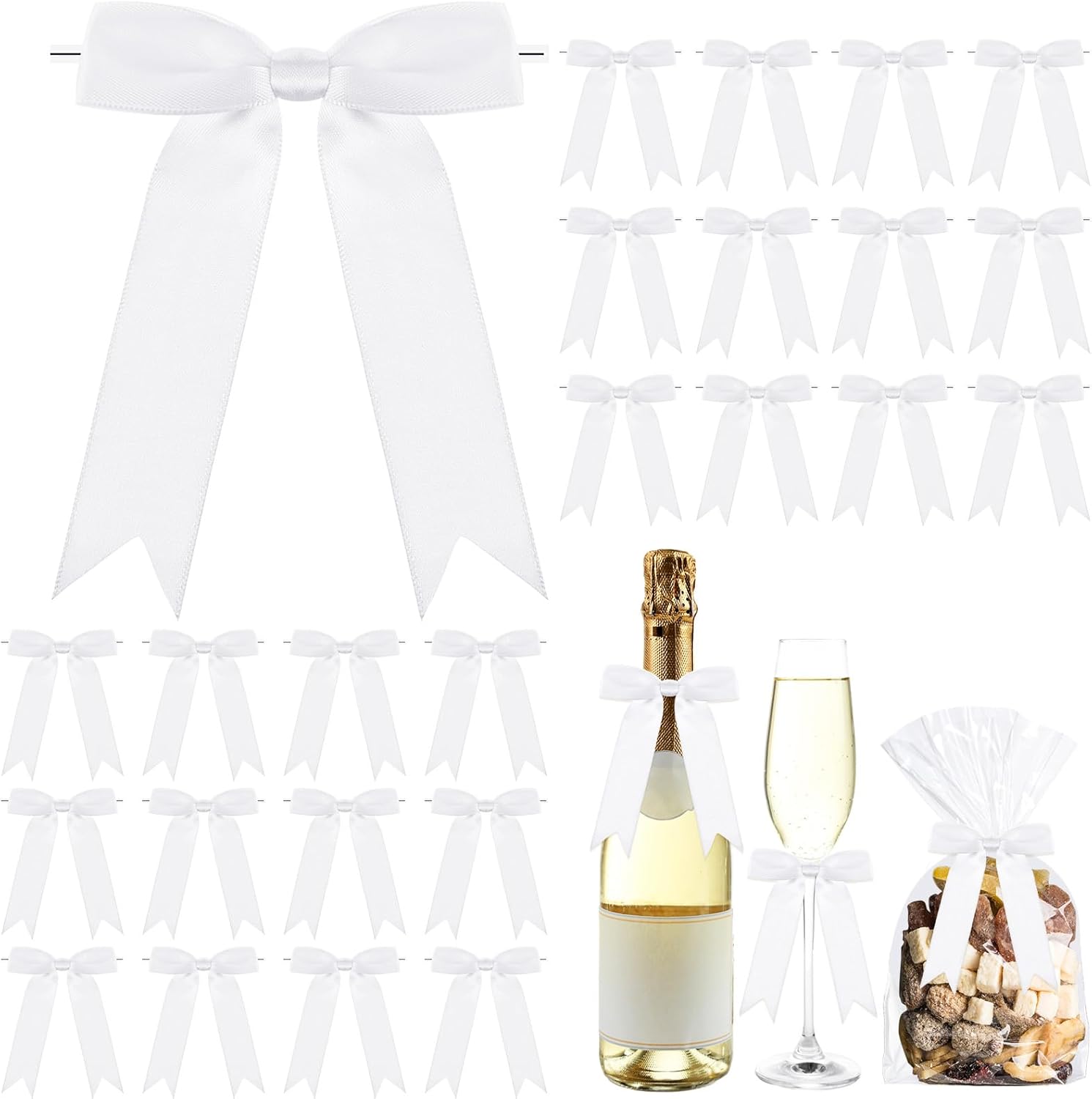- White Twist Tie Bows: our package includes 24 white ribbon bows and 24 twist ties; This set will easily meet your various needs for decoration or DIY projects; The dimensions of our bow are approximately 3.5 x 5 inches/ 9 x 13 cm, with a ribbon width of 1 inches/ 2.5 cm; The decent size is suitable for decorating gifts, packages, and other items; You can have fun with family and friend making eye catching decorative pieces by DIY