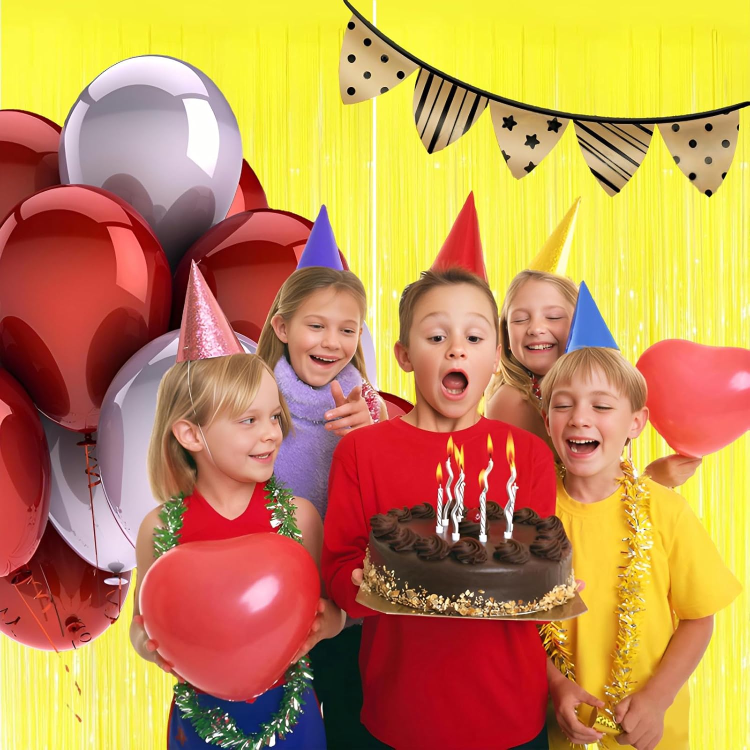 - Pair with other party decorations: Tinsel backdrop curtain can be paired with LED lights, balloons, banners, wreath, garlands, swirl streamer, tissue paper pom poms.