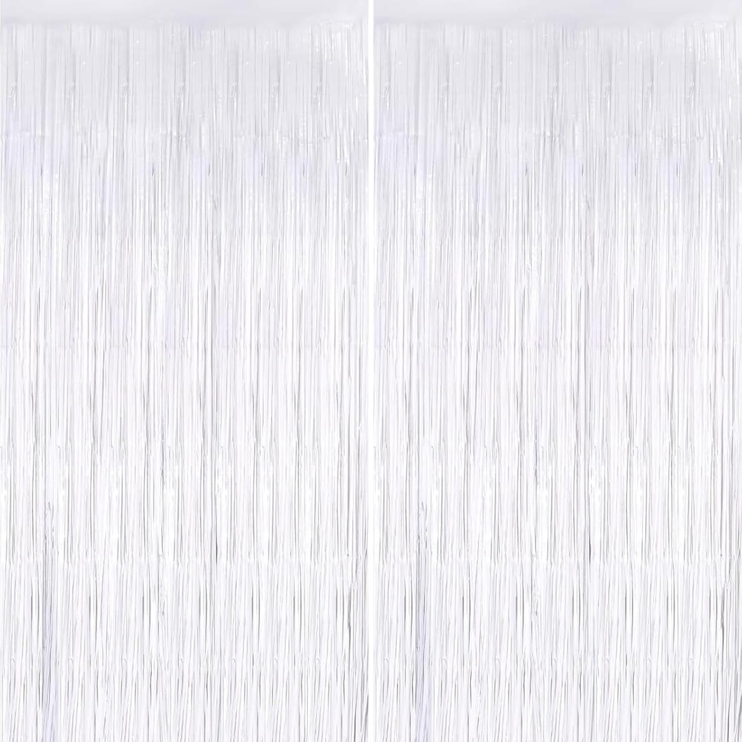 Keyali 2 Pack 3.3 * 8.3 ft Foil Curtain Metallic Tinsel Fringe Curtains Photo Booth Props Backdrop for Birthday Wedding Engagement Baby Shower Christmas Holiday Celebration Party,White