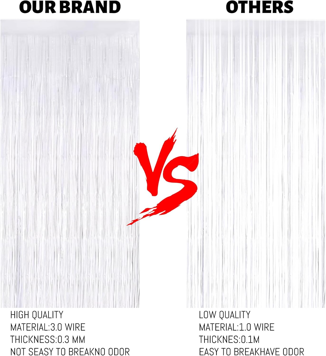 - Reflective effect:Foil fringe curtains have a thickness of 0.4mm, making them thicker and less likely to wrinkle or crease, resulting in a durable and long-lasting decoration. Additionally, Keyali Foil fringe streamers are made of sturdy and flexible PET material, making them resistant to breaking or tearing.Metallic streamers come in a range of beautiful colours with a shiny, iridescent, and reflective surface that creates an eye-catching and mesmerising effect!