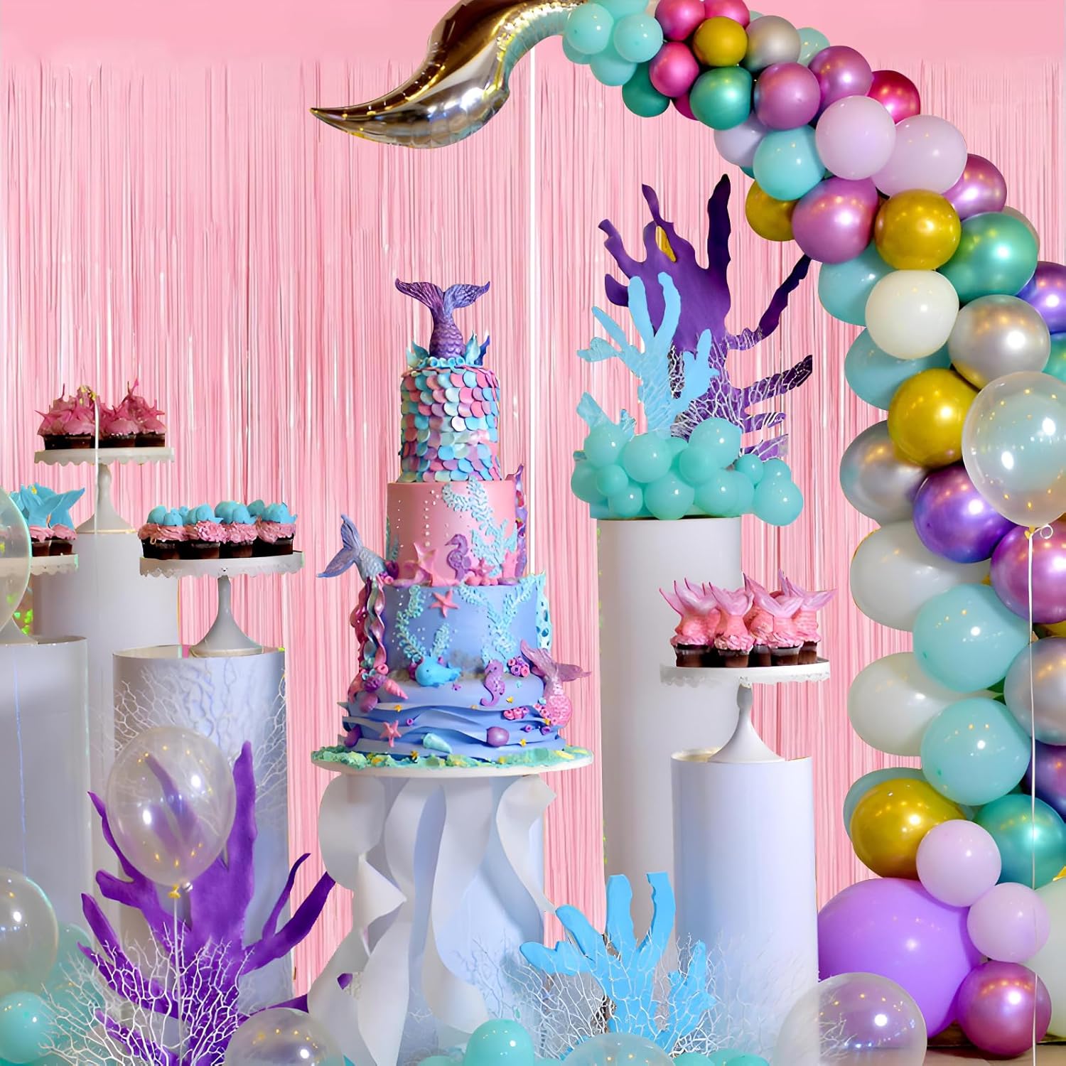 - Pair with other party decorations: Tinsel backdrop curtain can be paired with LED lights, balloons, banners, wreath, garlands, swirl streamer, tissue paper pom poms.