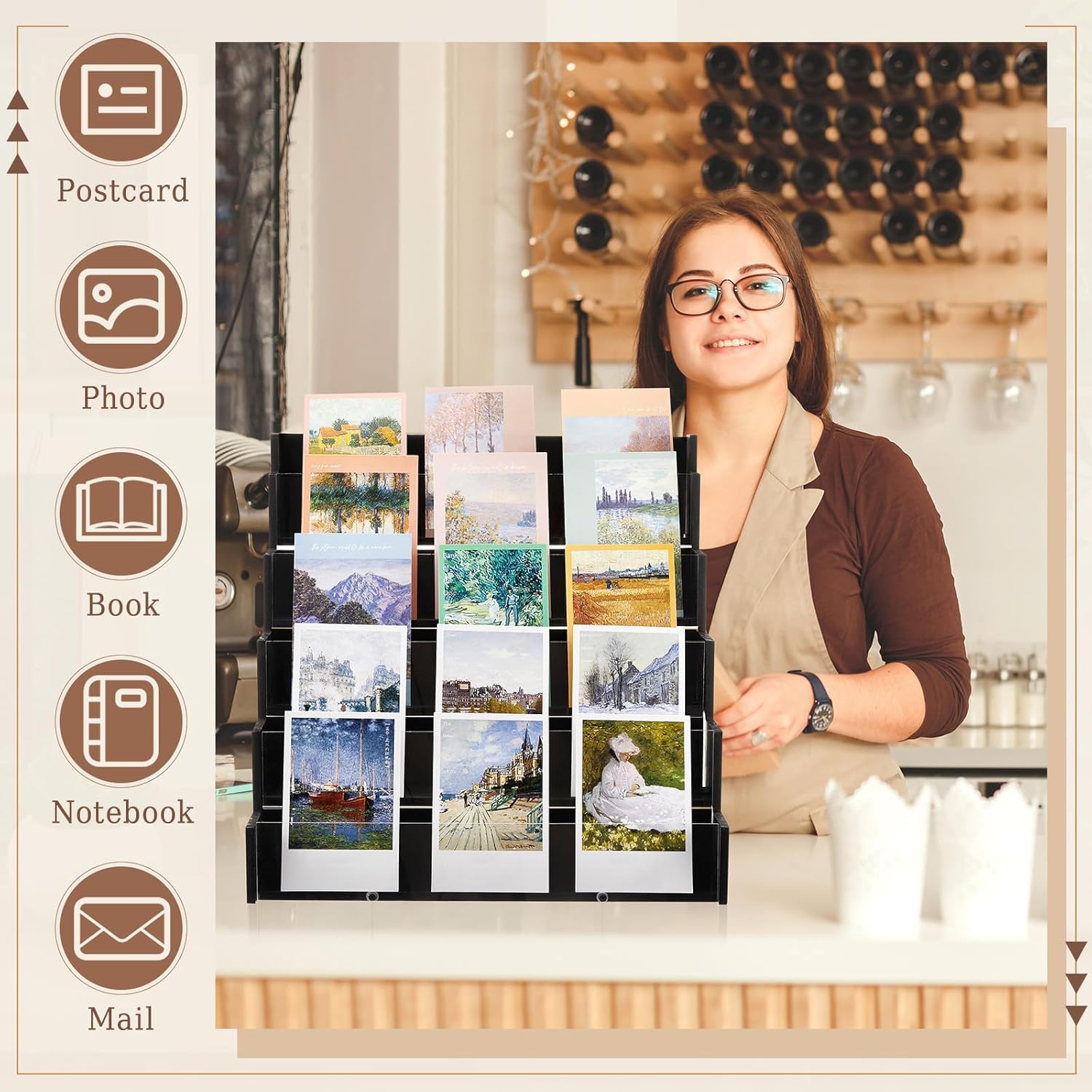 - Impressive Dimensions: our greeting card display stand boasts an overall size of about 14.9 x 10.2 x 14.2 inches, providing an ideal fit on your counter's pace; Each of its 5 tiers are about 2.8 inches high and 2 inches wide