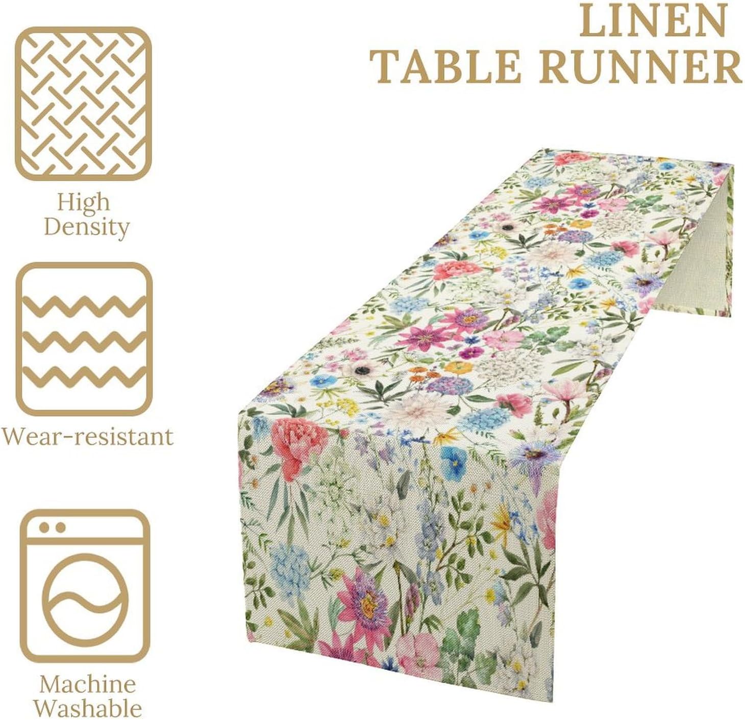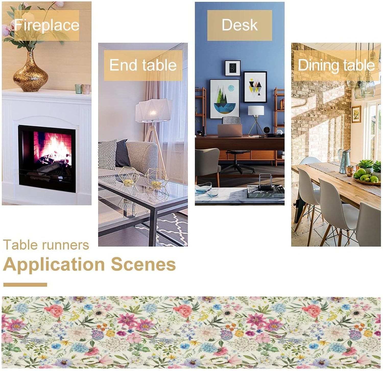 Floral Table Runner Watercolor Peony Rose Flower Kitchen Table Decoration for Indoor and Outdoor Wedding Party 13x108 Inch