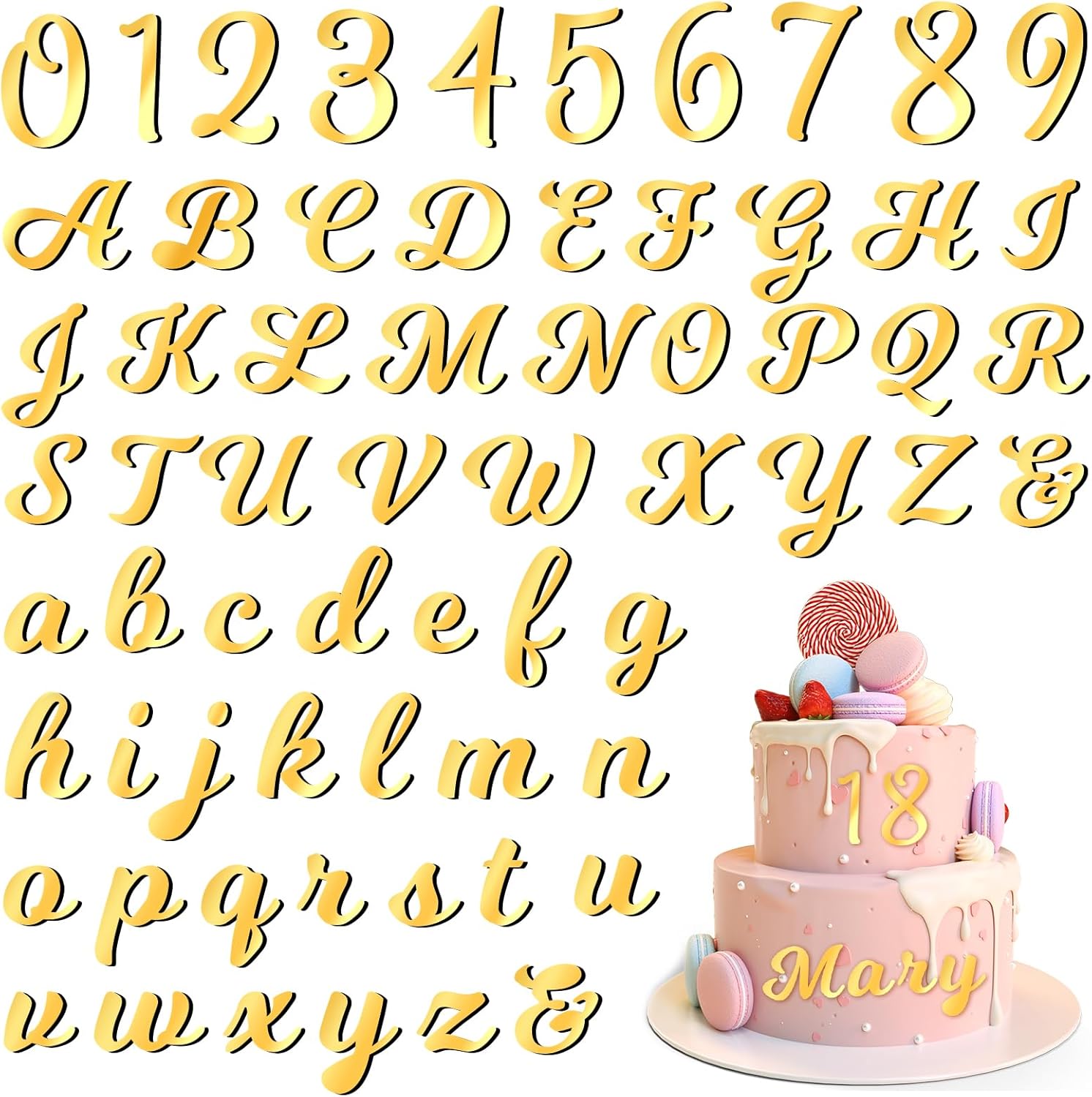 - 🍰 Complete Set: Contains two sets of all upper and lower case 26 letters and two sets of numbers (0-9), a total of 126PCS. Any name, age or special message can be customized on the cake according to the event requirements.