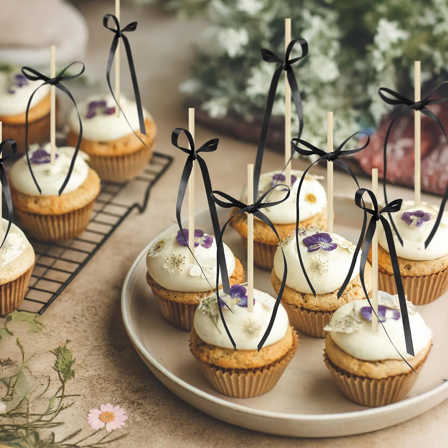 - 【Upgrade Quality】: These Bow Cupcake Toppers are made of high quality fabric. it is very so safe to be suitable for cakes, cookies, cakes, fruits, cookies, ice cream and other desserts.