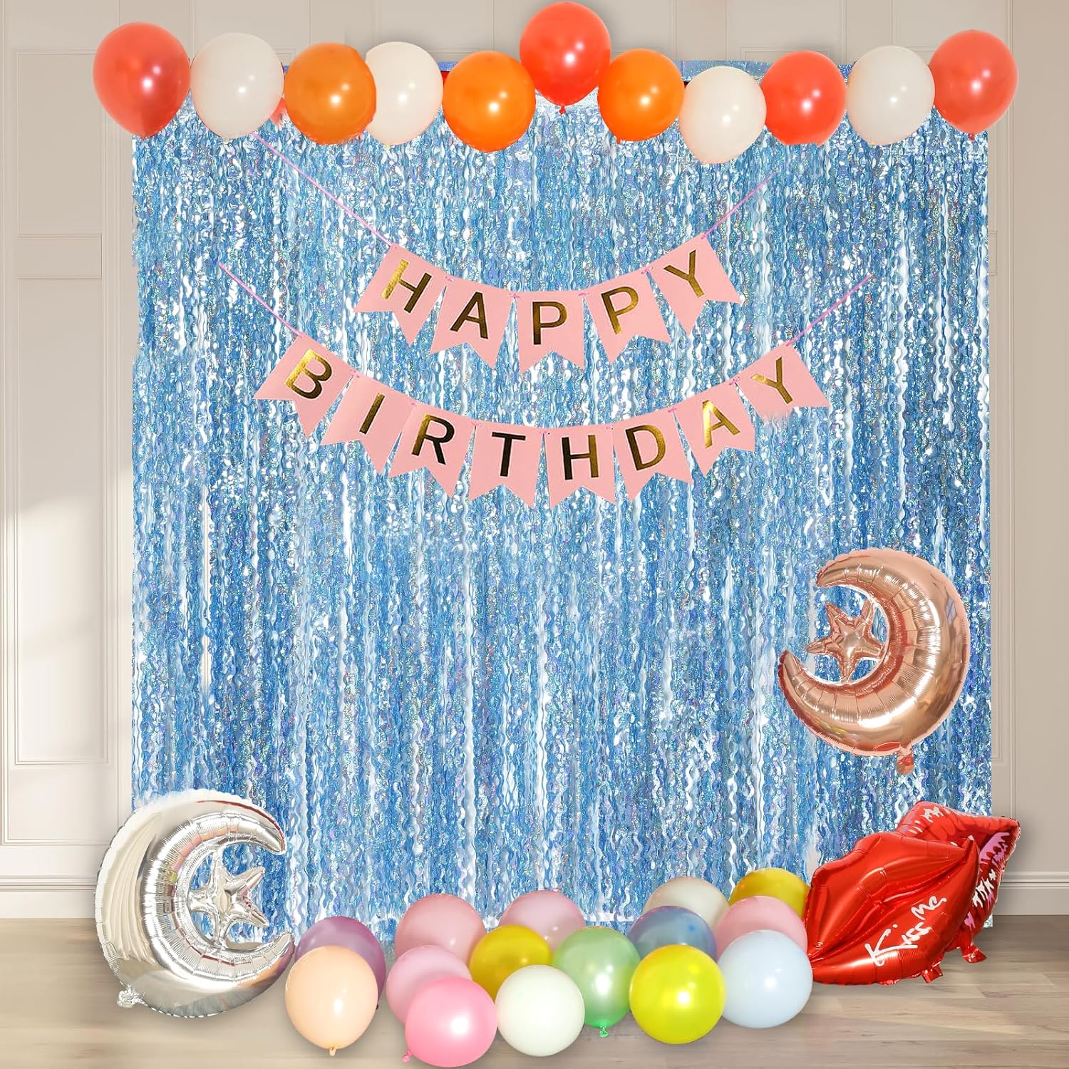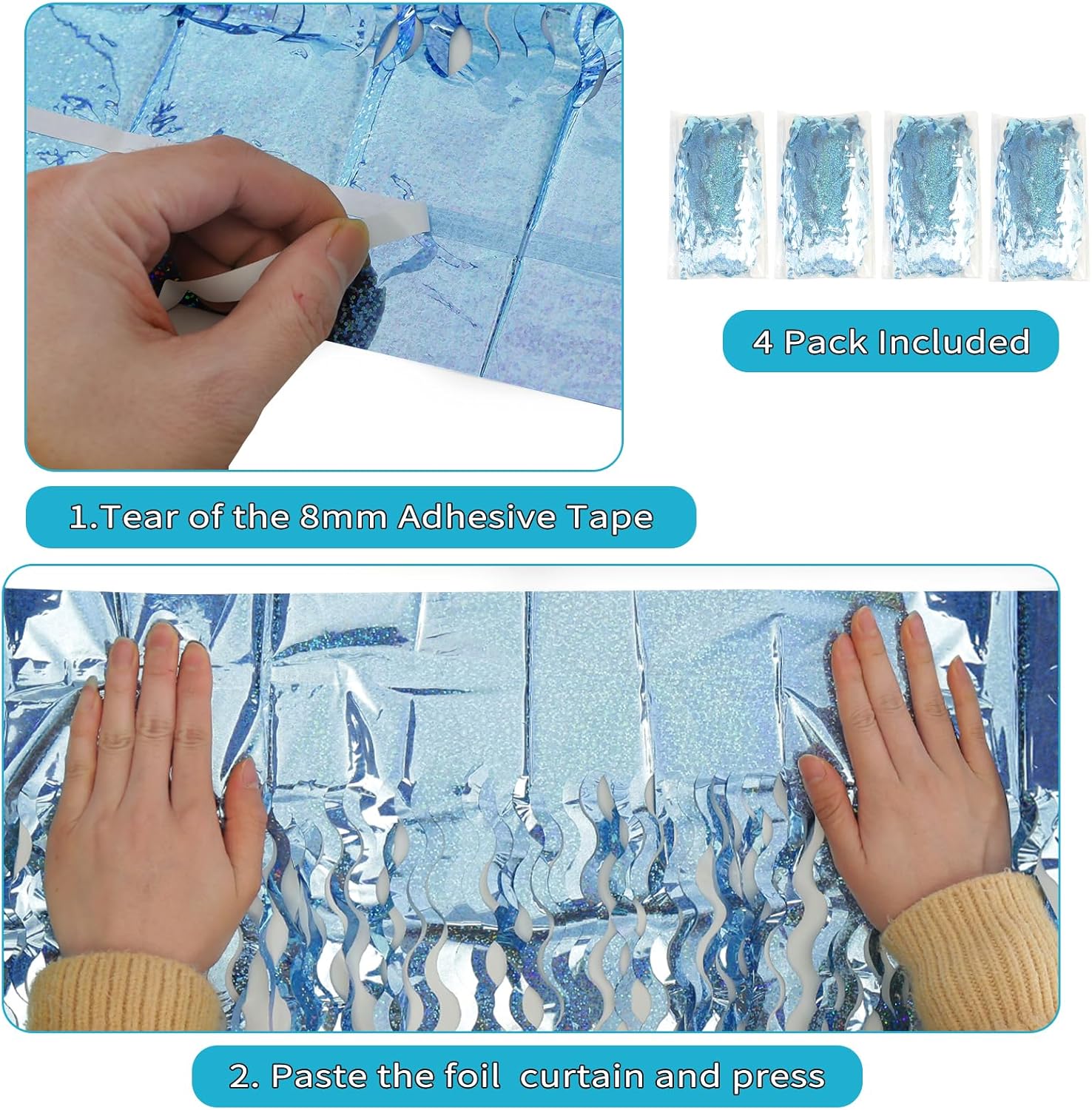- Easy to Use: The foil curtain backdrop has double-sided tape on the top of the back,please peel tape off would be very easy to paste on smooth surfaces such as wall,window,table,door or anywhere you like