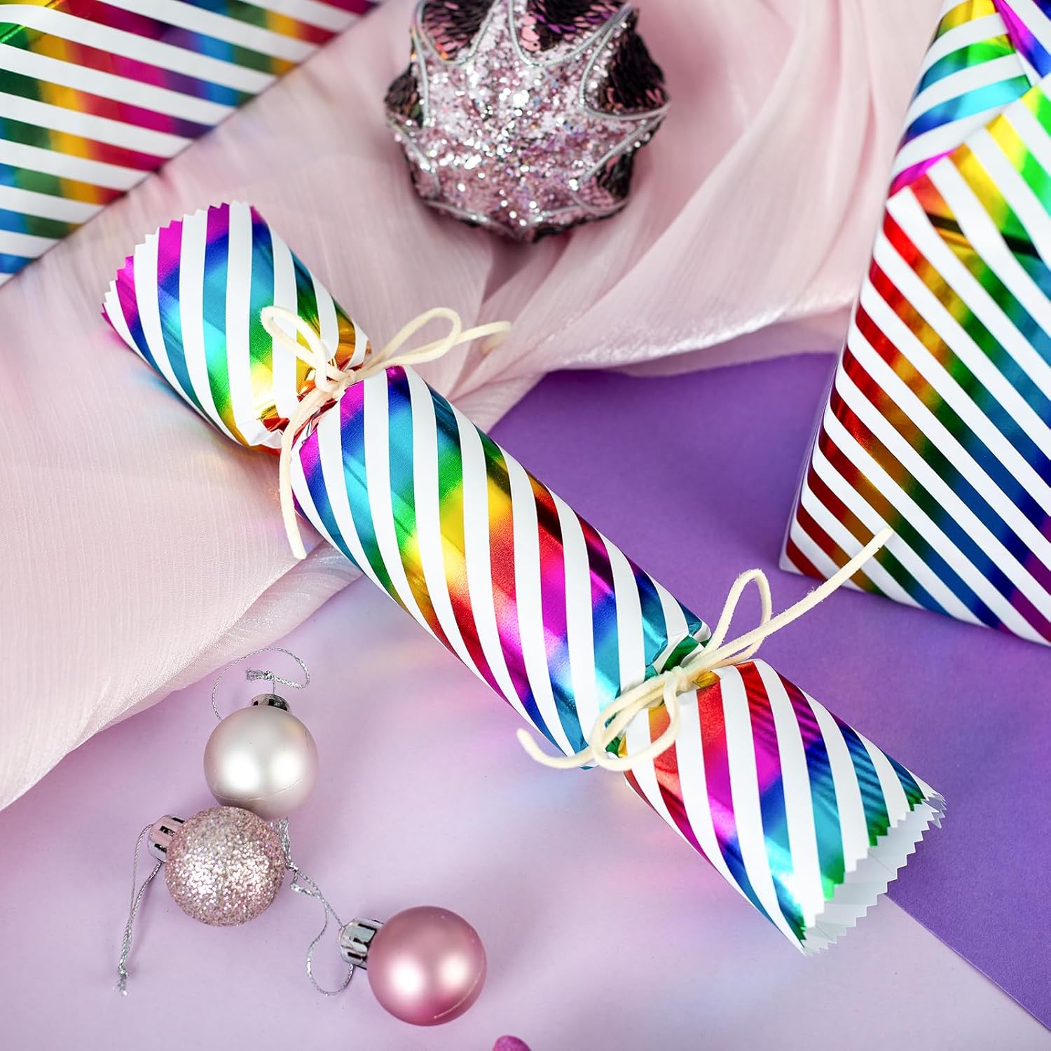 - Rainbow Wrapping Paper: Classic rainbow stripes make your gift wrap pop. The back has grid lines for easy cutting and less waste