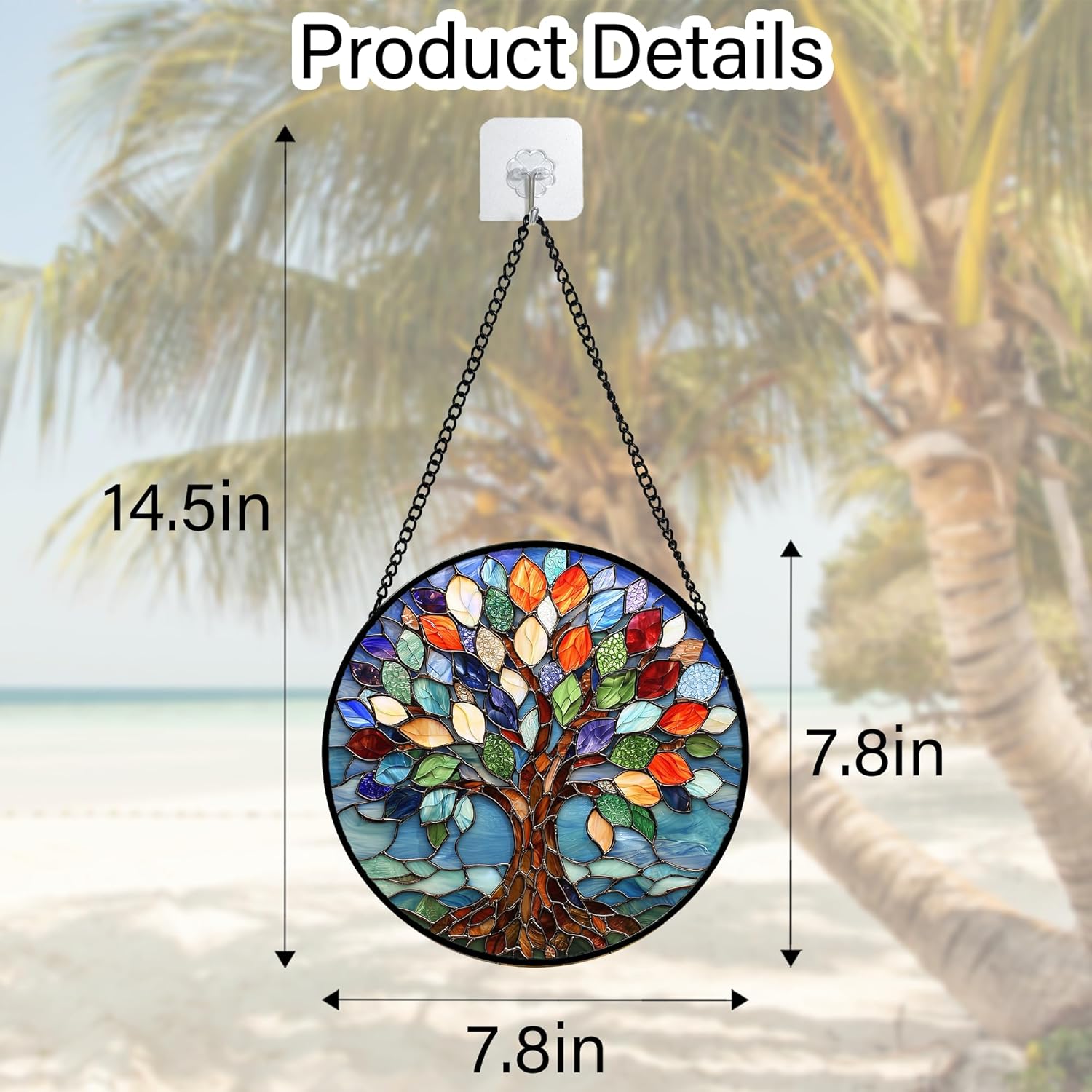 Stained Glass Window Hanging, Colorful Tree of Life Sun Catchers Glass Panel Blue Suncatcher Decor for Birthday for Women, Men, Wife, Aunt, and Mom 7.8 in