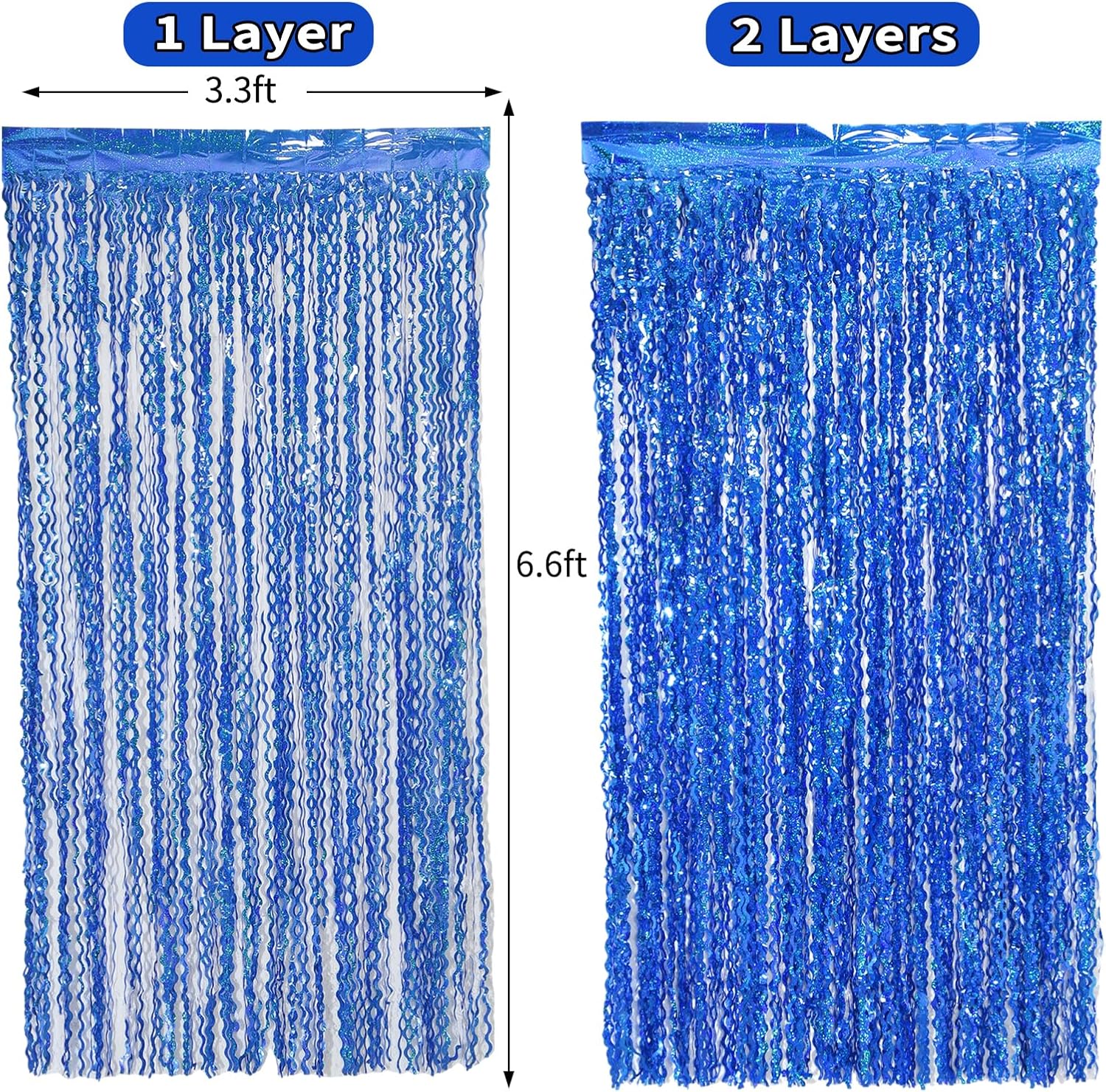 - Package Contents: 4 pack dark blue wavy foil fringe curtains,each curtain is 3.3ft x6.6ft,You can cut the metallic backdrop into the suitable length for use,Wonderful accessories for decorating doors and walls