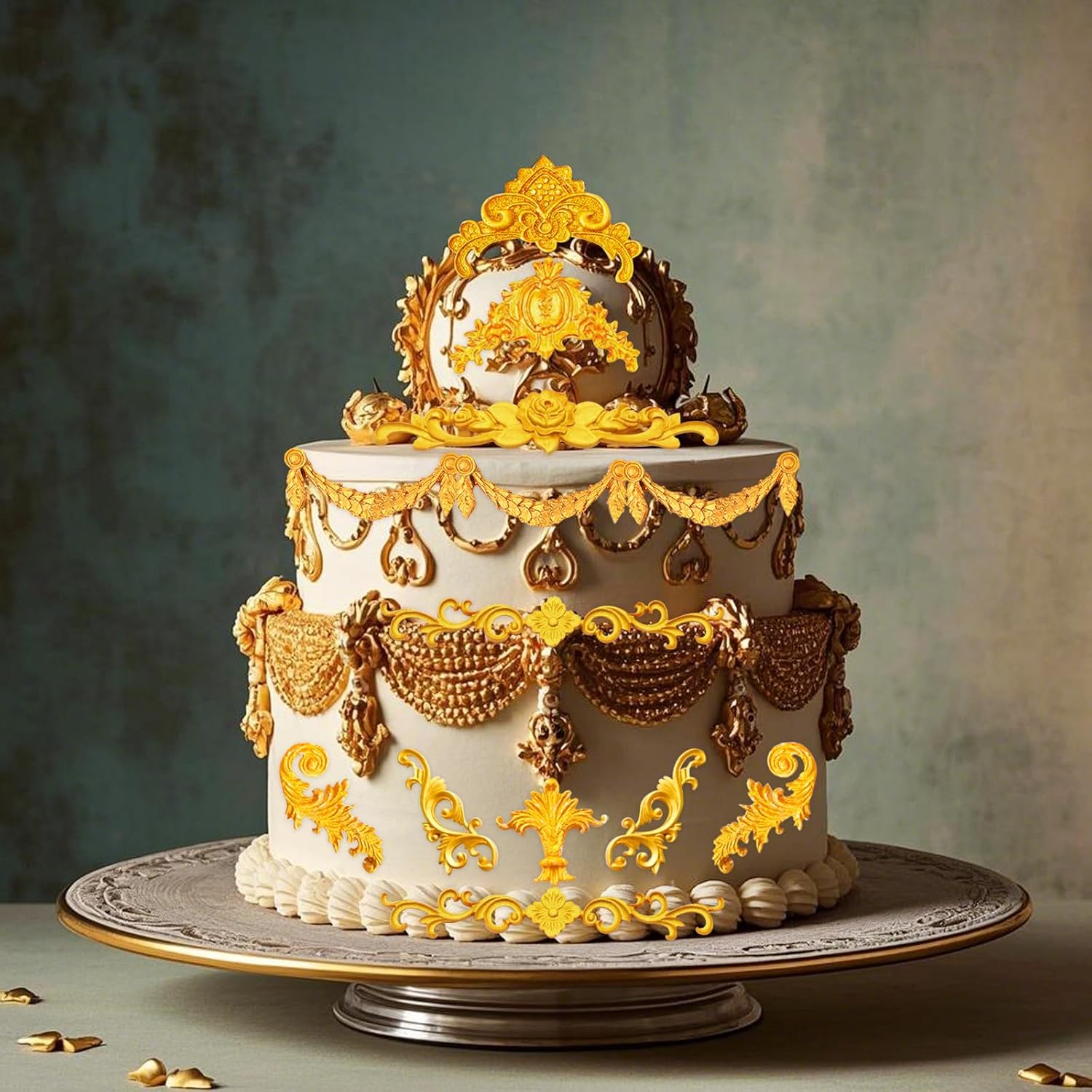 - VERSATILE SET: Complete 8-piece silicone craft molds collection featuring baroque scrolls, crown designs, floral patterns, and decorative borders for cake decorating
