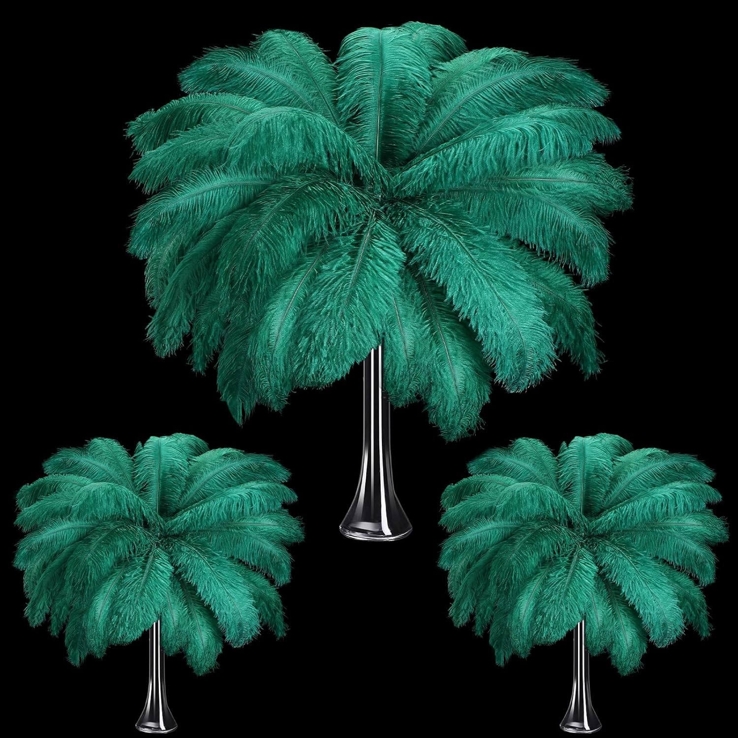Maitys 90 Pcs Large Natural Ostrich Feathers Bulk 14-16 Inch (35-40cm) 12-14 Inch (30-35cm) 10-12 Inch (25-30cm) Ostrich Feathers Plumes for Centerpieces Wedding (Blackish Green)