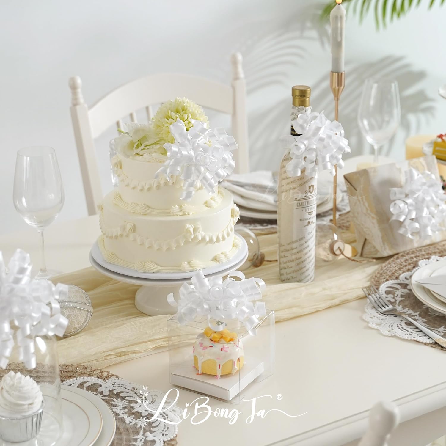 5 Inch White Gift Bow Curly Ribbon Bows Set of 8, Double Faced Satin Ribbon Bow Premade Self Adhesive Bow Decorations for Party, Wedding, Holiday, Gift Bows for Crafts, Wine Bottle, Presents