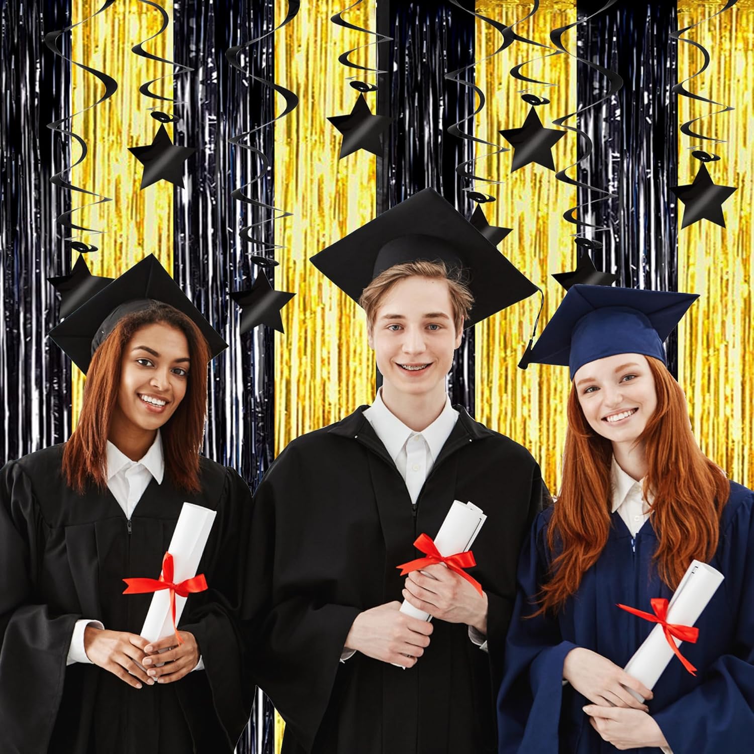 BEISHIDA Black Stars Hanging Swirls Bachelorette Graduation Hanging Ornament Decorations for Birthday Party Supplies Congrats Grade 2025 Graduation Decorations,Pack of 15