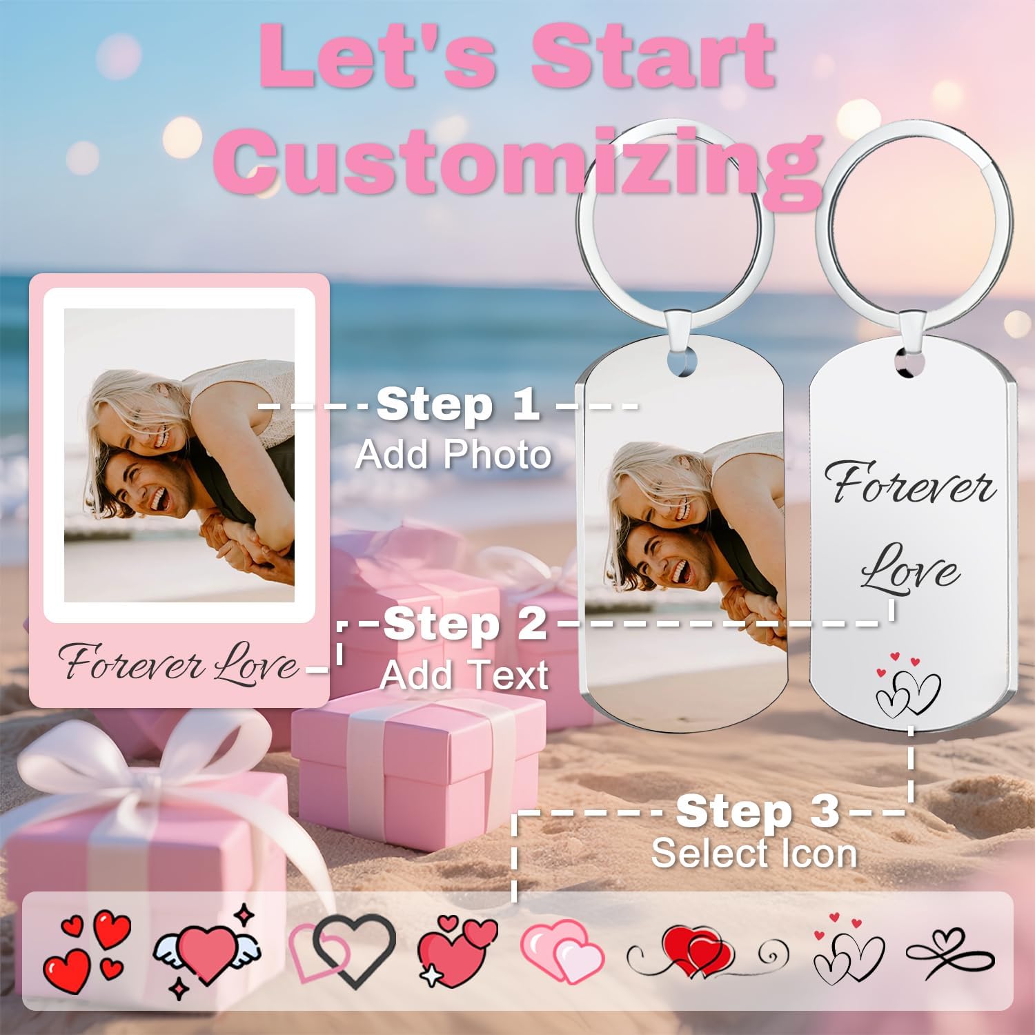 • 【Personalized Custom Keychain - Photo & Text Customization】Click "Customize Now" to upload HD photo and personalized text. Variety of styles available to craft unique Custom Keychain for yourself or loved ones, freezing precious moments.
