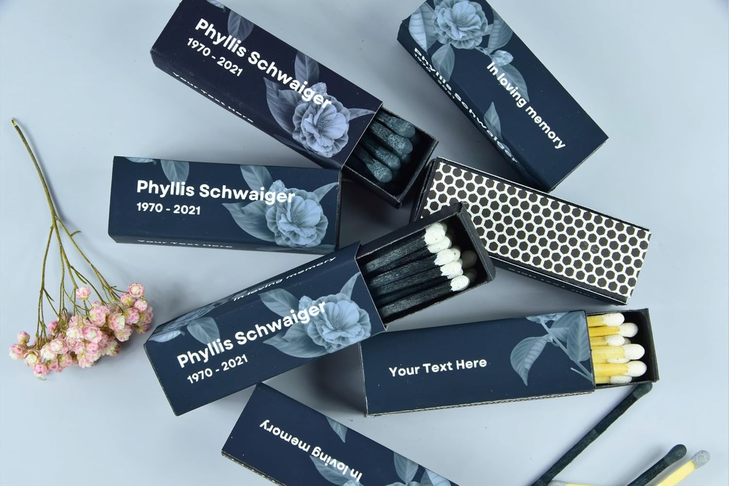 - Create a lasting and meaningful tribute with our Personalized Funeral Matchboxes—a respectful and customizable way to remember and honor those we’ve lost.