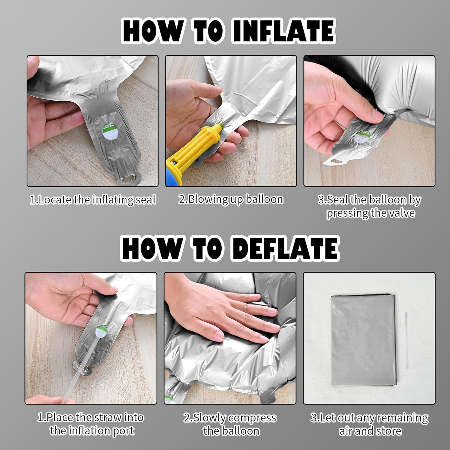 - Reusable Foil Balloons: The silver star balloon set is completely reusable. Avoid excessive friction and sharp objects when using it. Use a straw to deflate and flatten it after event, and it will still be a shining decoration at the party next time