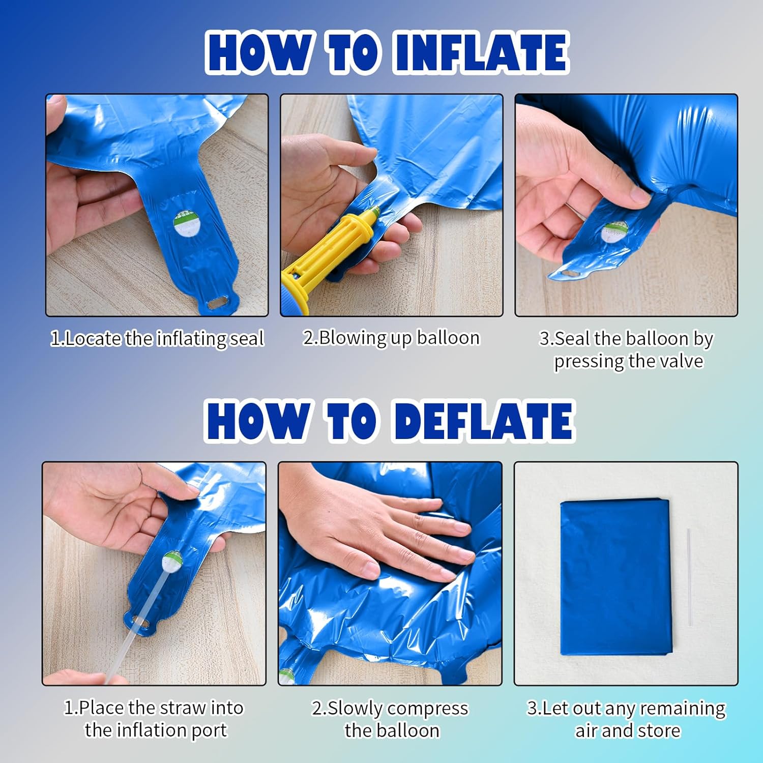 - Reusable Foil Balloons: The star balloon set is completely reusable. Avoid excessive friction and sharp objects when using it. Use a straw to deflate and flatten it after event, and it will still be a shining decoration at the party next time