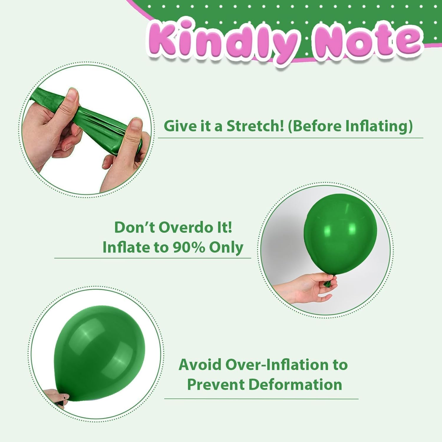 - Party-Ready Tips: Please be careful not to overfill the balloon to avoid bursting,away from sharp objects and direct sunlight to prevent damage. Please note that it is normal for 2-3 balloons out of the all to have some damage or small holes. If you have any questions or need assistance, please don't hesitate let us know.We will help you within 24 hours.