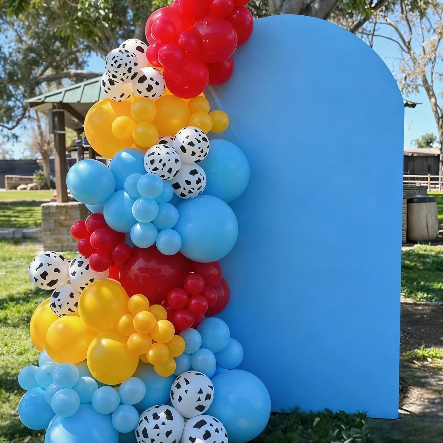 - 12 Inch Colorful Balloon Set: 10 red balloons, 10 x light blue balloons, 10 x yellow balloons, 10 x light green balloons, 5 x cow print balloons, 5 x blue background white cloud balloons, and 1 x light blue ribbon. This Interesting cow ,cloud prints and colorful colors will embellish a fun and playful atmosphere at your party.