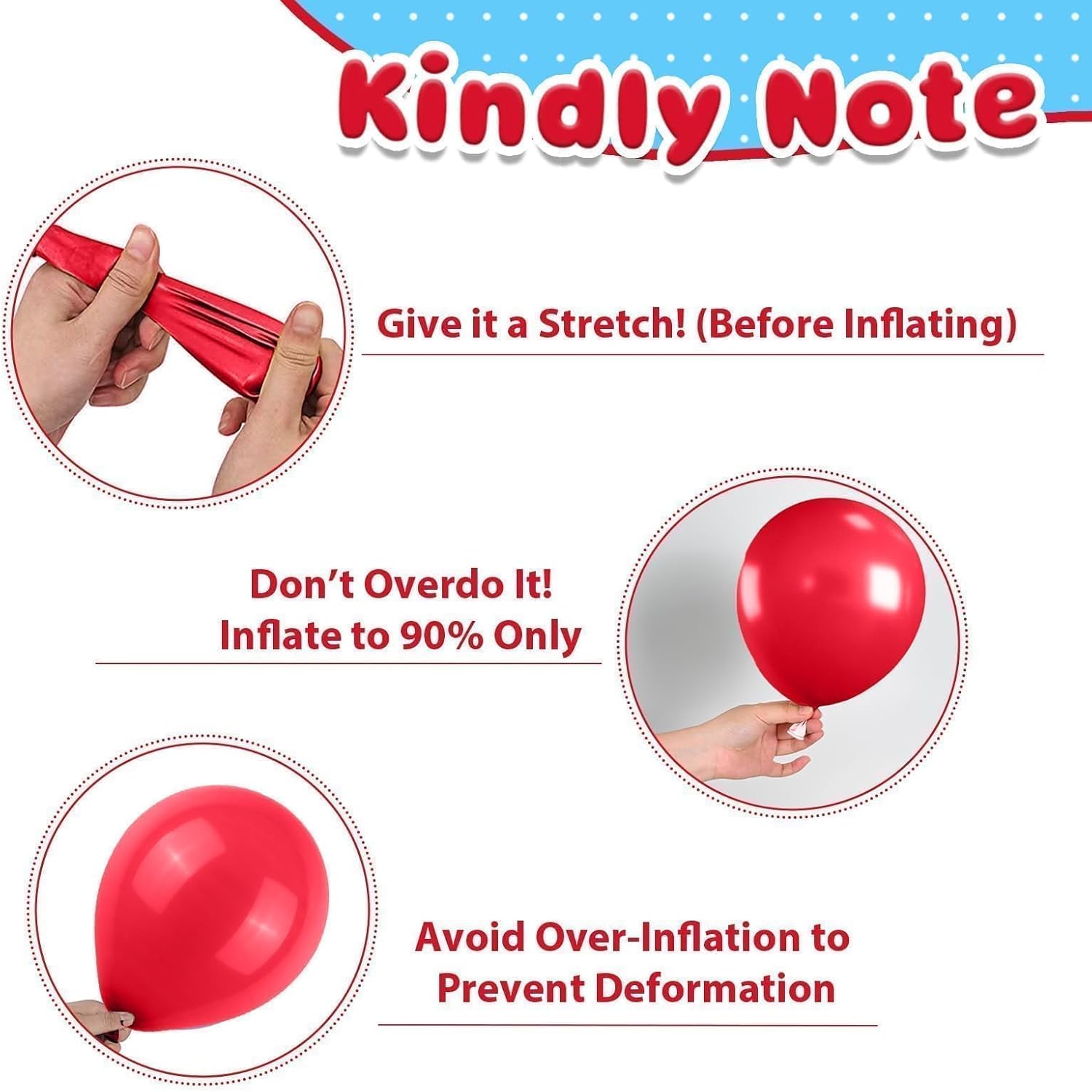 - Party-Ready Tips: Please be careful not to overfill the balloon to avoid bursting,away from sharp objects and direct sunlight to prevent damage. Please note that it is normal for 2-3 balloons out of the all to have some damage or small holes. If you have any questions or need assistance, please don't hesitate let us know.We will help you within 24 hours.
