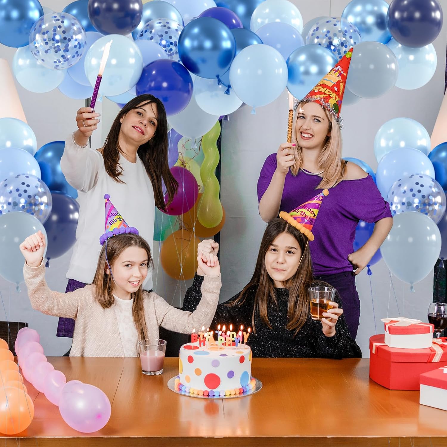 - Blue Party Balloons Kit : Come with 100pcs in 9 assorted blue balloons, Includes 15 royal blue balloons, 15 metallic blue balloons, 10 navy blue balloons, 10 pastel blue balloons, 10 pearl blue balloons, 10 baby blue balloons, 10 dusty blue balloons, 10 macaron blue balloons, 10 blue confetti balloons, 2 balloon ribbons. All the balloon size is 12 inches after inflation.