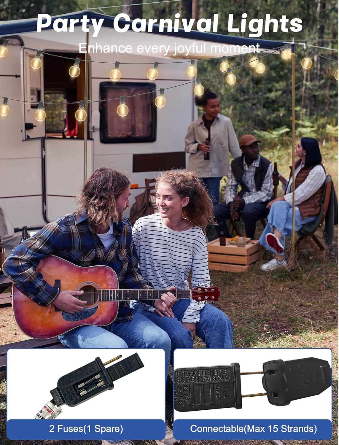 - Weatherproof & Safe: The outdoor string lights waterproof are made of weatherproof technology to withstand extreme temperatures, rain, wind and humid climates. Safe and durable white patio lights with built-in spare fuses for easy replacement