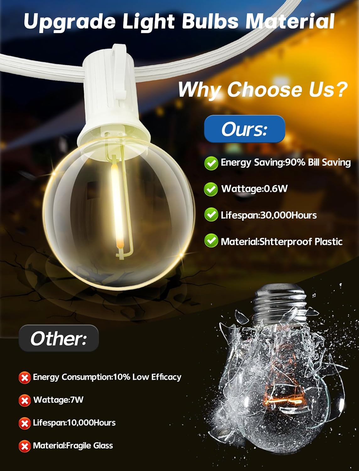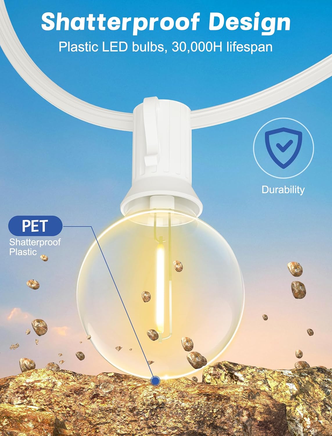 - Shatterproof Safety Design: Each bulb is made of sturdy PC material to ensure the safety of homes with children or pets, the white string lights are ideal for weddings, parties or cozy backyard gatherings