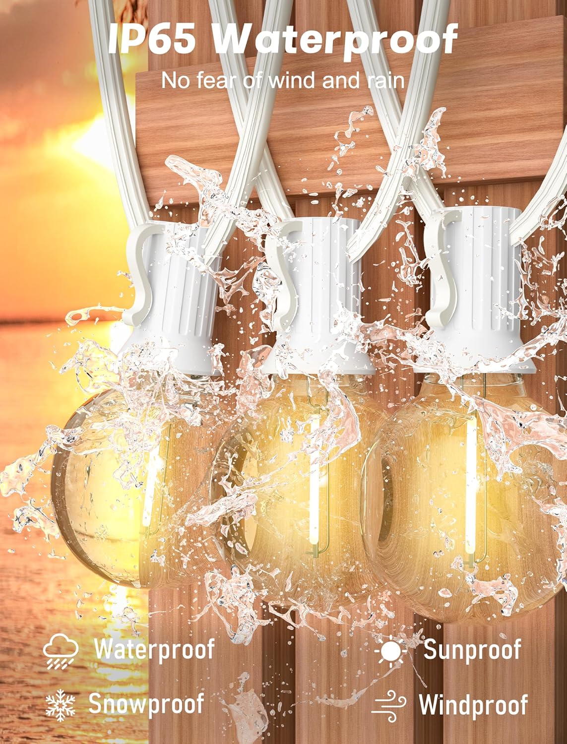 - Dimmable & Widely Used: Compatible with most dimmers (dimmer not included). Our commercial g40 white string lights are perfect for balcony, garden, gazebo, tent, BBQ market, cafe umbrellas, wedding decoration