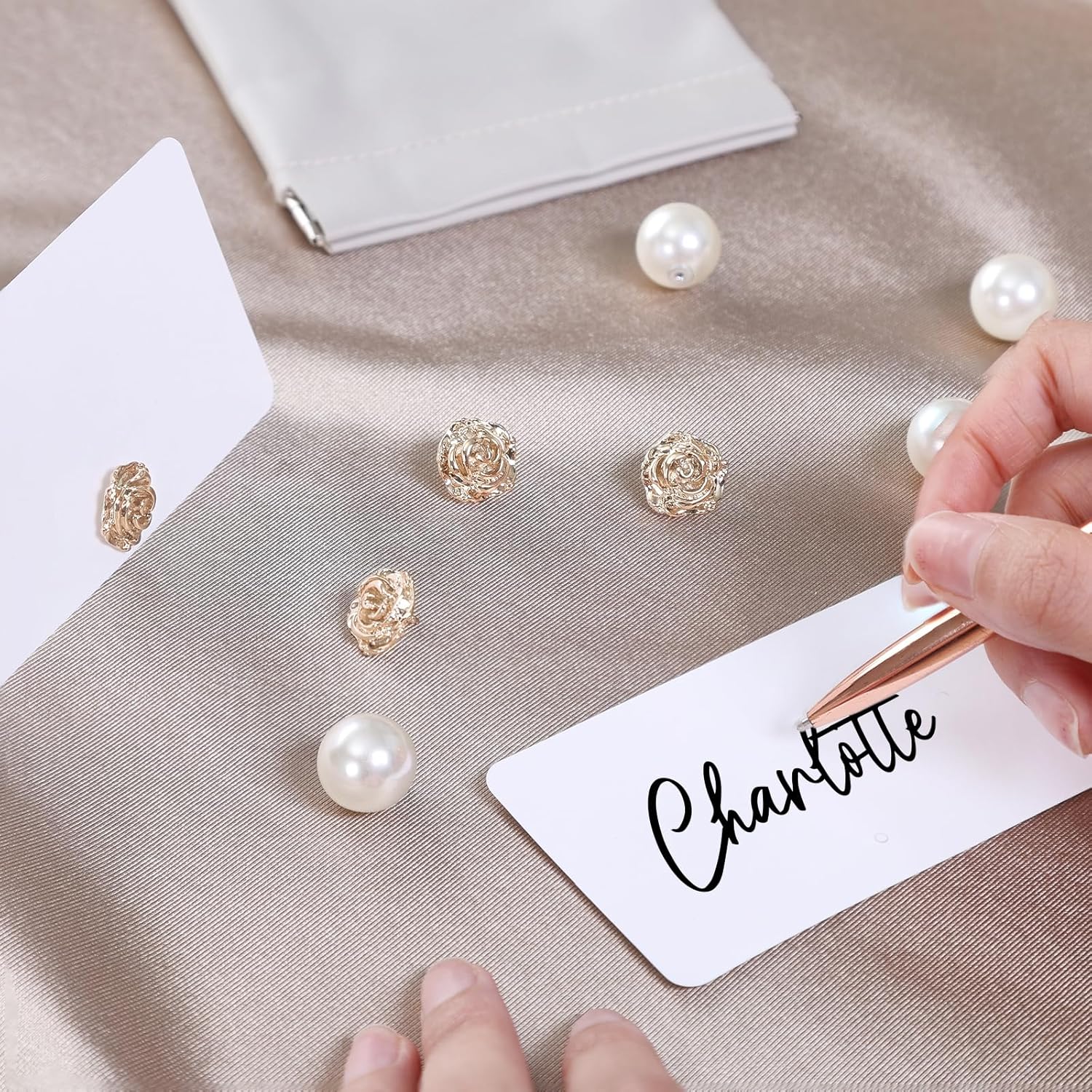 - Package Includes - 12 pcs holders & cards. for holding the picture or place card setting. Innovative brooch-style design that can hold place cards, business cards, name tags, food labels, or even small trinkets.