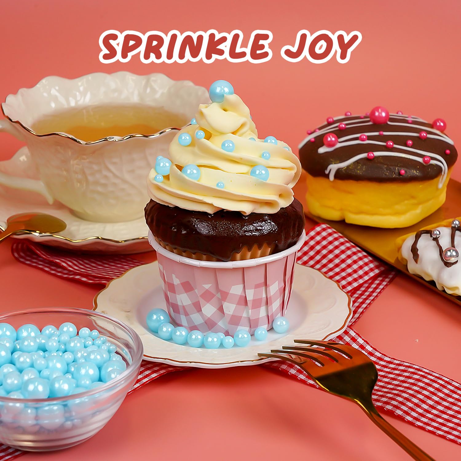 - Perfect Decoration: Candy pearls come with 5 different sizes, and can be combined with other toppings.Blue edible sprinkles can add a sense of decoration to cakes,cupcake,cookies,Ice cream and other foods, making it more beautiful and unique. The sprinkles are bulk. 180g shaker bottle decorates 6-8 large cakes or 100+ cookies β cost-effective for bakeries and DIY events like Christmas gingerbread houses or Halloween tombstone cakes.