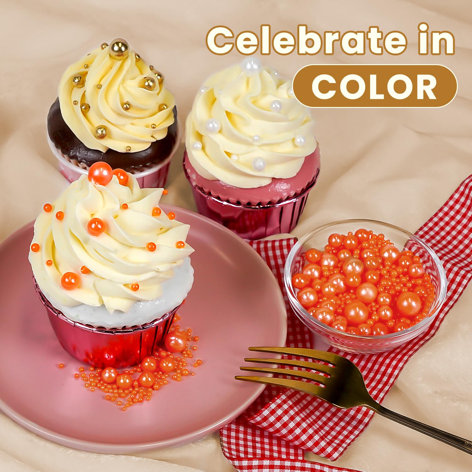 - Safe & Certified Pearls: Food-grade orange pearls sugar sprinkles made with non-GMO ingredients, 0% preservatives. Kosher/Halal-certified in facilities with no allergens (soy/nut/dairy). Tamper-proof sealed for safety.
