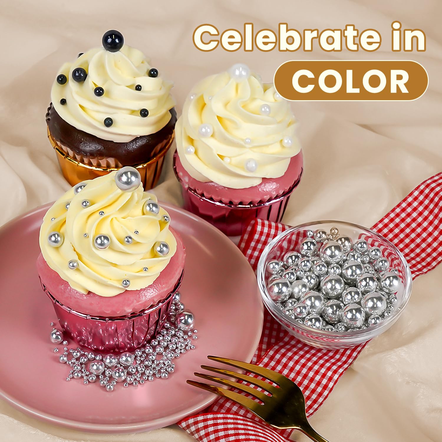 - Safe & Certified Pearls: Food-grade silver pearls sugar sprinkles made with non-GMO ingredients, 0% preservatives. Kosher/Halal-certified in facilities with no allergens (soy/nut/dairy). Tamper-proof sealed for safety.