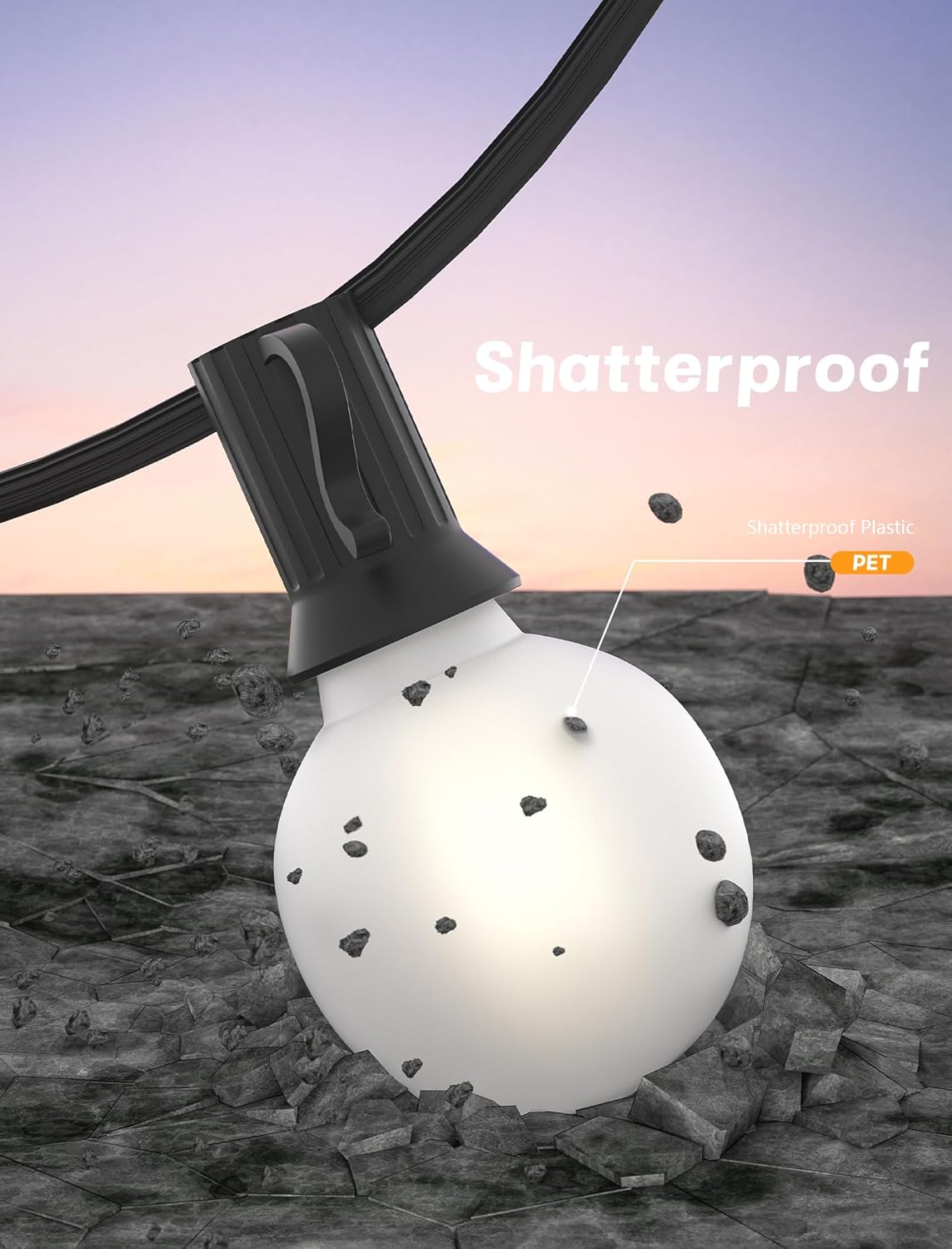 - Shatterproof Safety Design: Frosted Globe string lights are made of PC material to ensure the safety of homes with children or pets. Outdoor porch lights are ideal for weddings, parties or cozy backyard gatherings