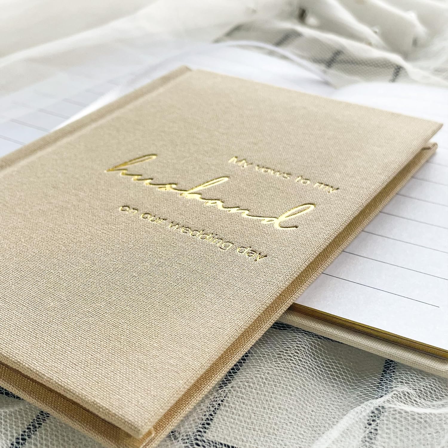 Vow Books His and Hers Set of 2 Canvas Linen Wedding Vow Books Husband and Wife Hard Cover Vow Books for Engagement Gifts(XZ-HW-Beige)