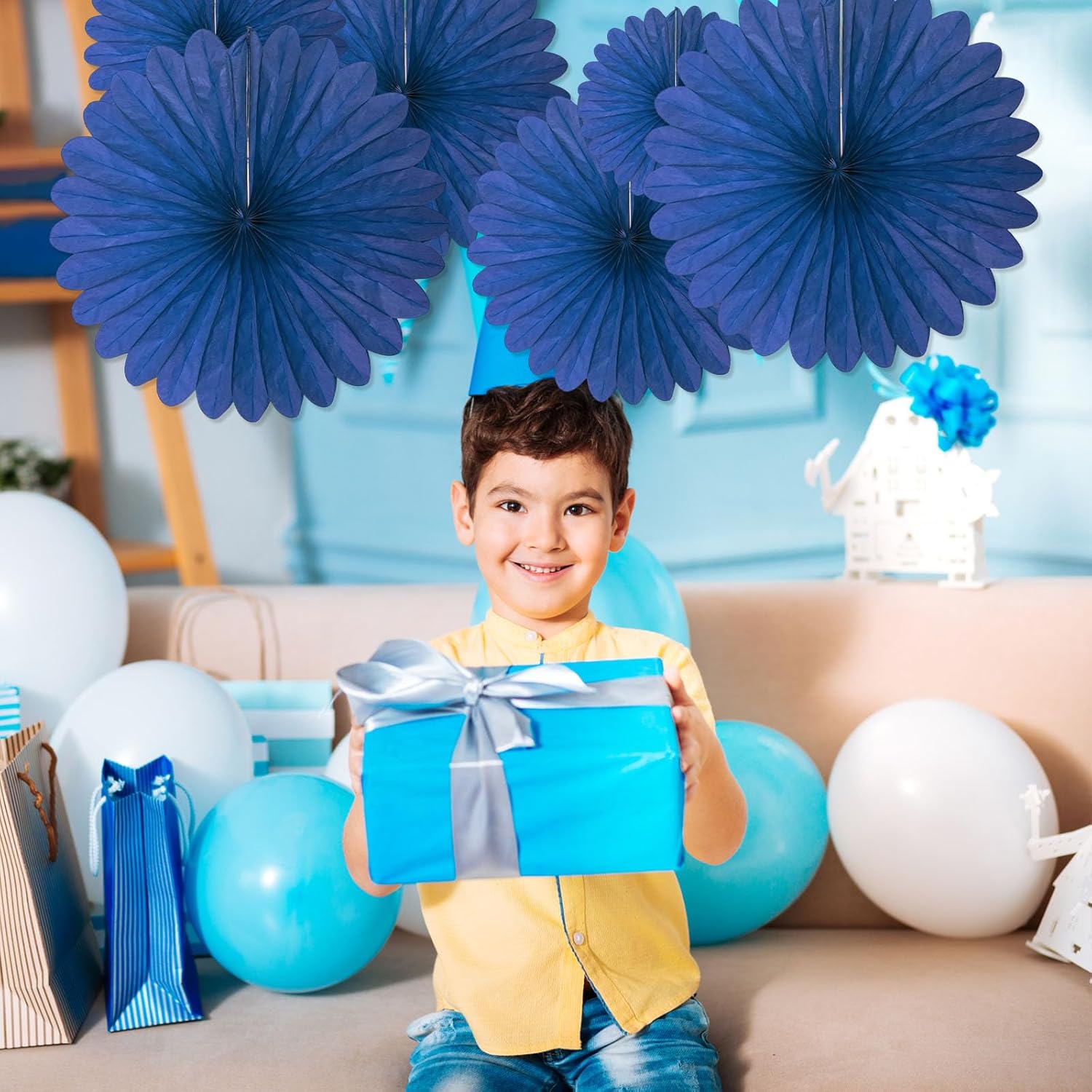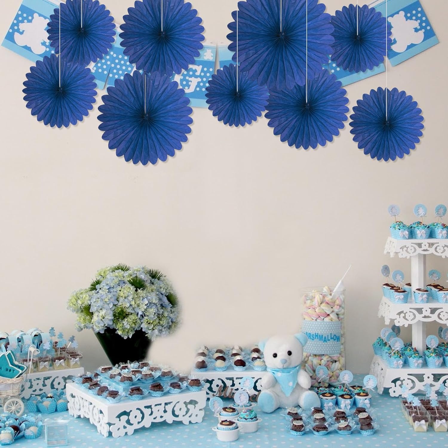 20 Pcs Navy Blue Hanging Paper Fan, Round Paper Fans Decorations Set for Weddings, Birthdays, Engagement, Bridal Shower, Baby Shower Event, Graduation, Party Supplies Decor