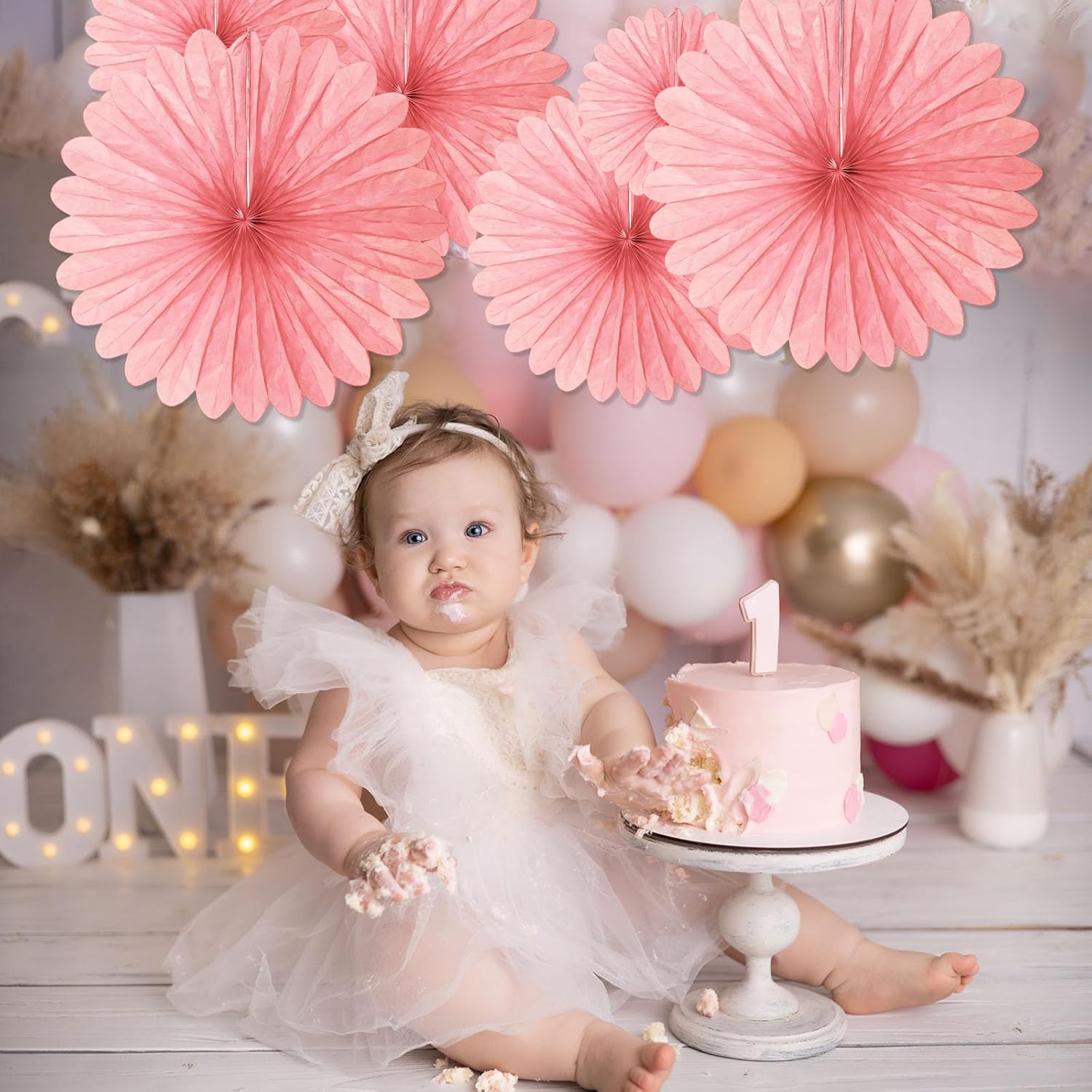 20 Pcs Light Pink Hanging Paper Fan, Round Paper Fans Decorations Set for Weddings, Birthdays, Engagement, Bridal Shower, Baby Shower Event, Graduation, Party Supplies Decor