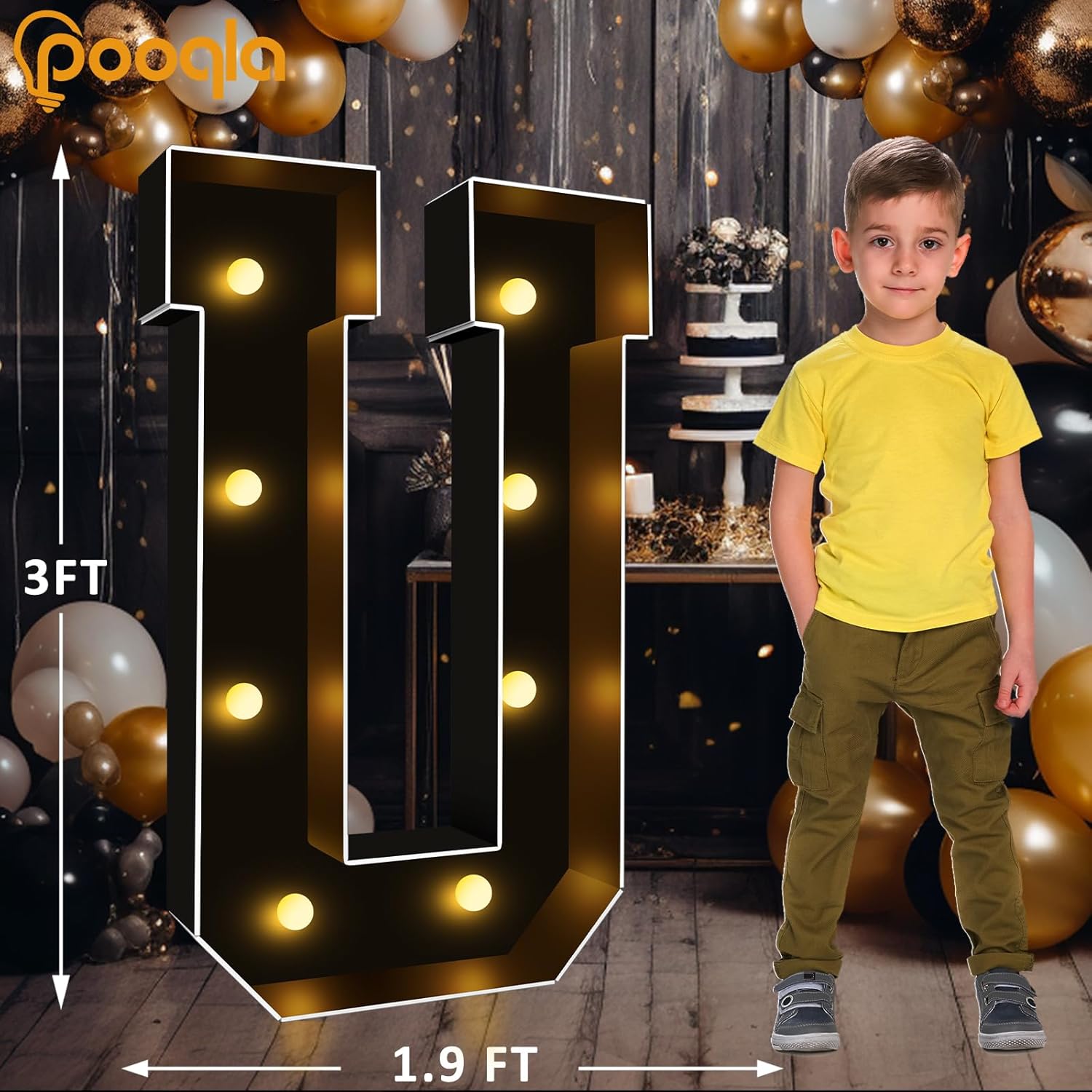 Pooqla 3FT Marquee Light Up Letters, Black LED Party Decor Large Marquee Letters 3 Feet Tall, Giant Mosaic Letter for Birthday Graduation Anniversary Wedding Decoration, Letter U
