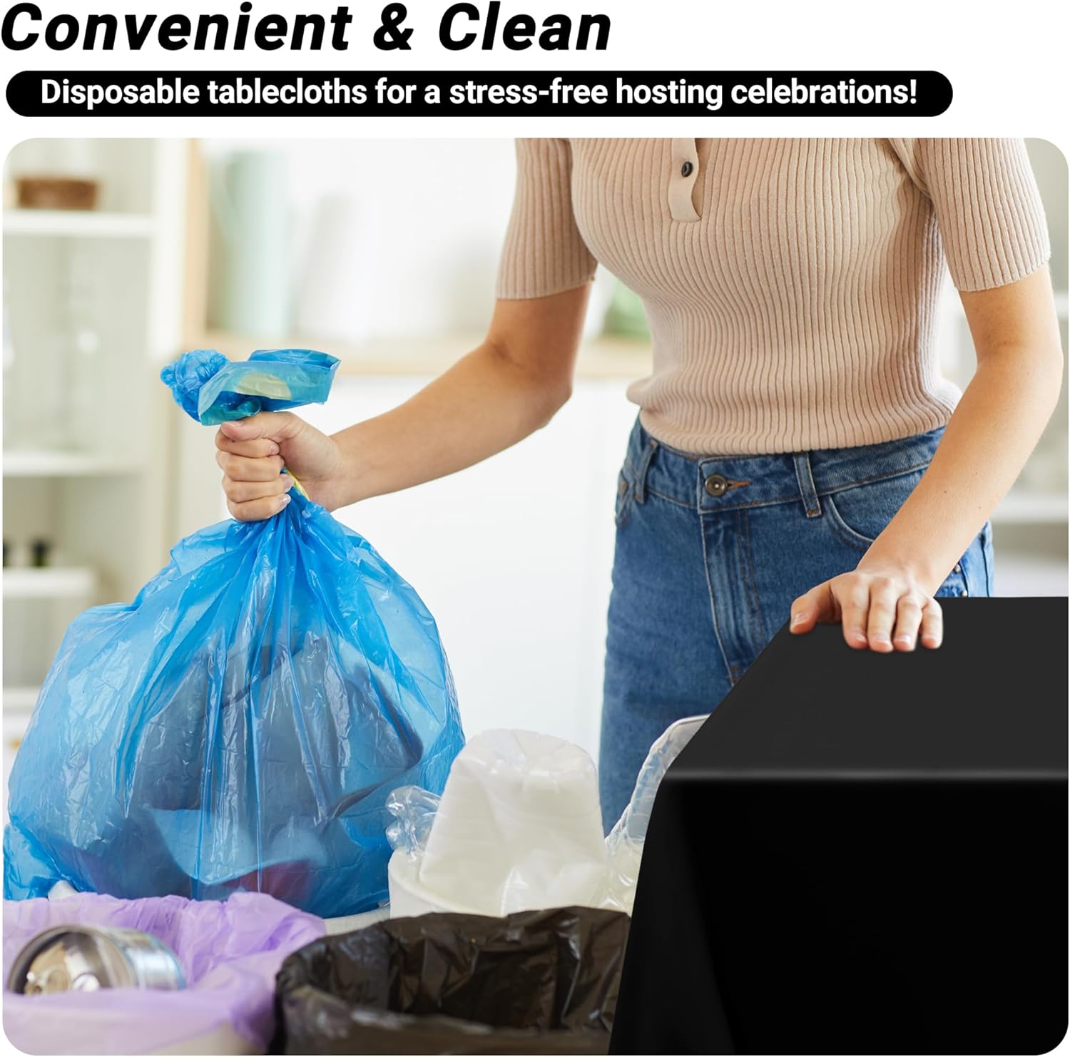 - Long-lasting and Waterproof: Black tablecloths are made from the high-quality, sturdy 0.03mm plastic PE3 filament. Simply rinse and wipe off the plastic table covers for reuse in the next party or roll them up and dispose them off.