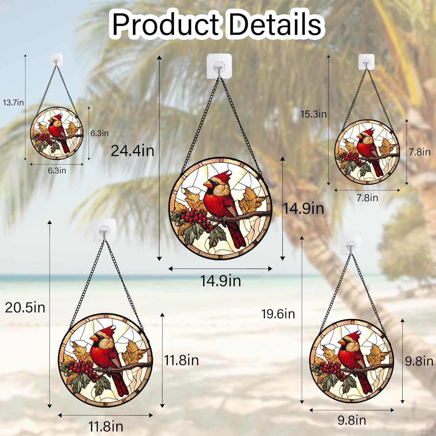 Stained Glass Window Hanging, Birds on a Branch Cardinal Sun Catchers Diamond Glass Panel Hangings Suncatcher Decor for Birthday for Women, Men, Wife, Aunt, and Mom 14.9x14.9 in