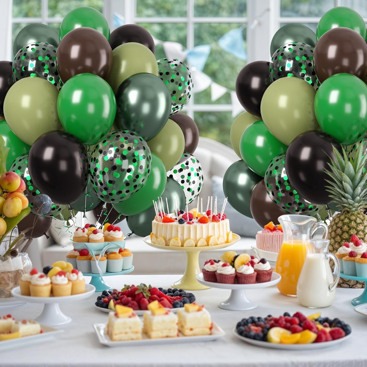 - 【PREMIUM MATERIAL】 Our green black brown balloons set is made of premium latex. Suitable for various occasions, they can be filled with either helium or air, and when tied securely, they'll stay inflated for several days! With great elasticity, these balloons can be inflated to a sufficient size and handle regular use. Enjoy your celebrations with these reliable balloons!