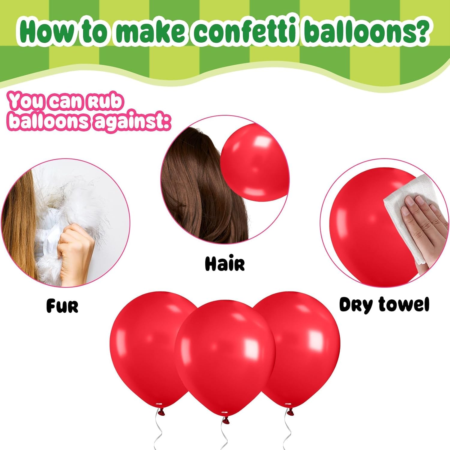 - 【EFFORTLESS SET UP】Assembly is simple—enjoy the fun of DIY! For helium inflation, tie the balloons with the included ribbons for a polished look. To make confetti balloons stand out, gently rub the balloon on fabric to create static, which helps the confetti stick evenly. These balloons can be placed anywhere—trees, walls, windows, or doorways—to create a festive atmosphere. They can also be paired with other colors to fit different party themes, making decorating a breeze.
